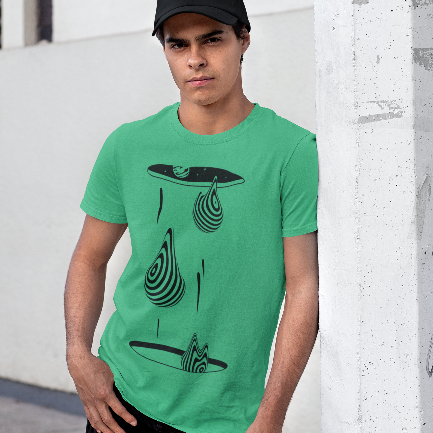The Abstract Graphic Tee features warped lines and fluid shapes that swirl into a hypnotic masterpiece. Bold and bright, this design commands attention and adds a dynamic, artistic edge to your wardrobe—perfect for those who dare to stand out and express their vibrant creativity.