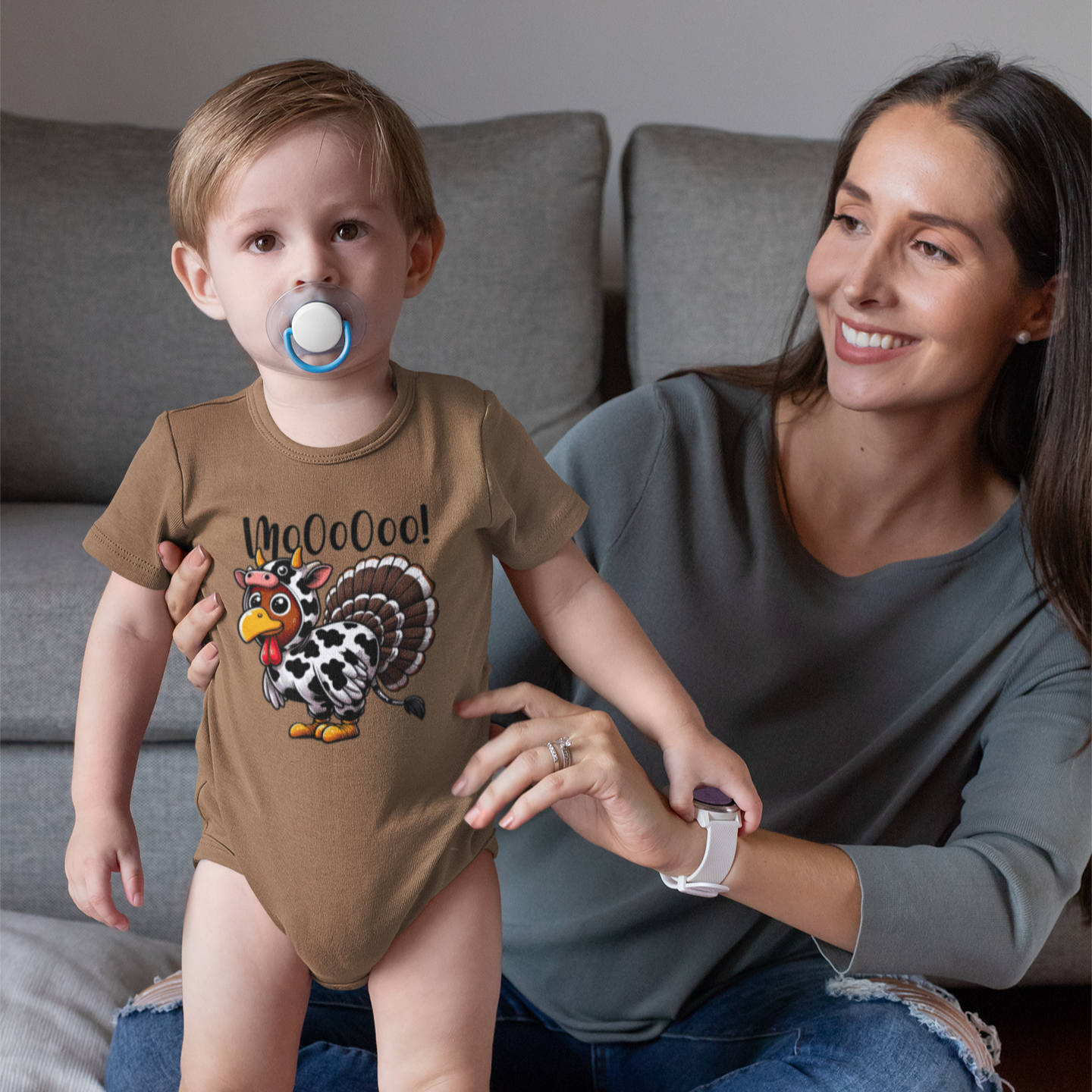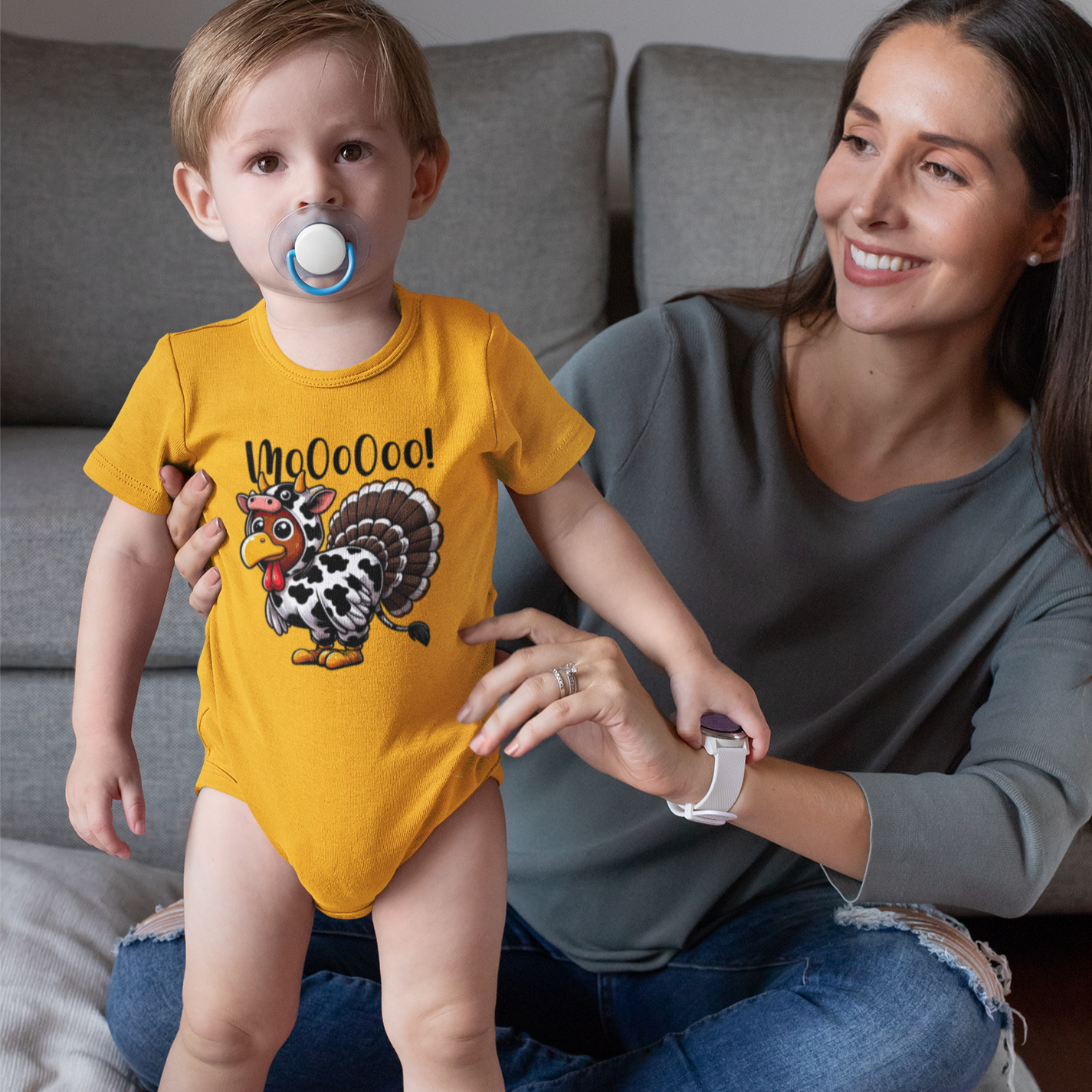 Bring playful barnyard fun to your little one’s outfit with the Barnyard Surprise Infant Bodysuit & Toddler T-Shirt. Featuring a quirky blend of a gobble and a moo, this unique design adds a whimsical touch to your barnyard bundle’s wardrobe. Soft and comfortable, it’s perfect for all-day play and spreading smiles wherever your child goes.