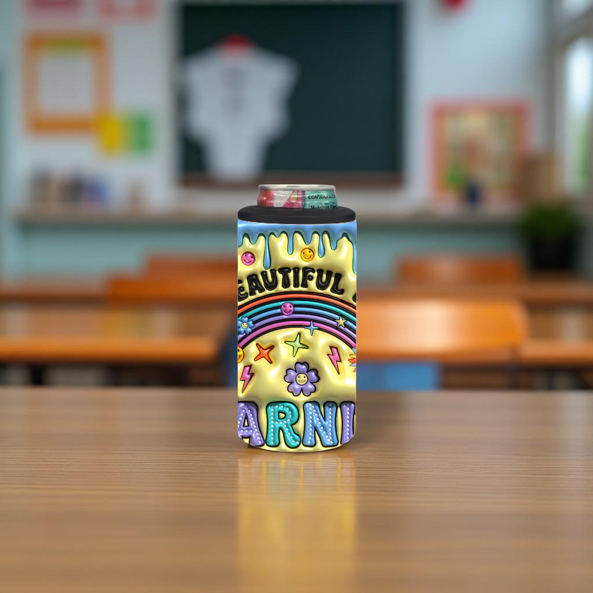 Brighten every school day with the Beautiful Day for Learning 4-in-1 Can Cooler Cup! Featuring drippy 3D-style rainbow magic, sparkles, and cheerful smiles, this cooler brings fun and color to your favorite drinks.