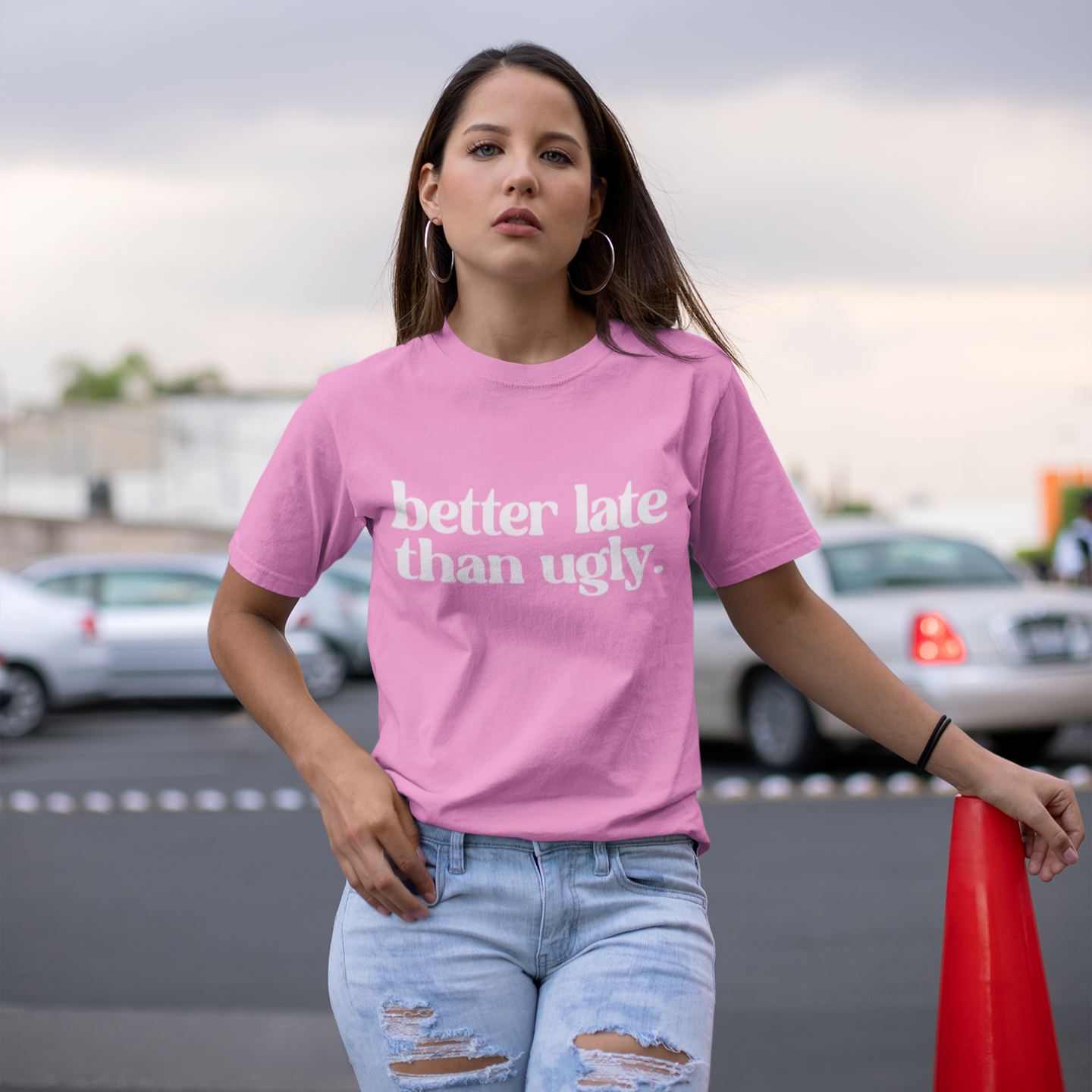 Embrace your fashionably late moments with the Better Late Graphic Tee. Made from soft cotton, this comfortable tee gives you the perfect excuse to run behind in style. Ideal for those who want to combine casual comfort with a playful attitude, it’s your go-to choice for effortless, chic looks.