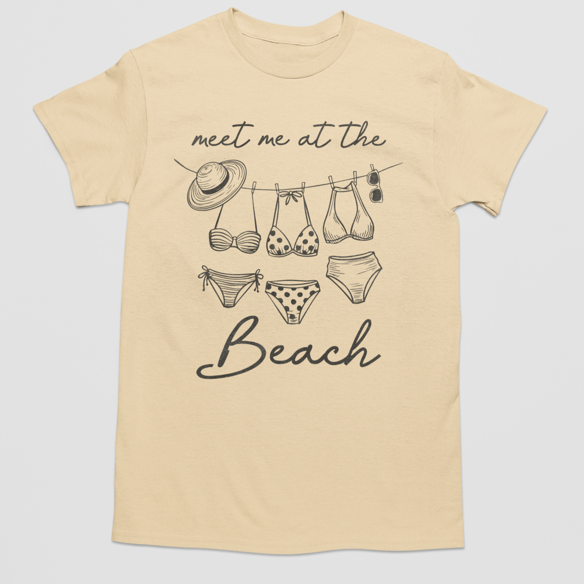 Get ready for endless summer days with the Bikini Lineup Graphic Tee! Featuring swimsuits on a string and a carefree vibe, this tee invites you to meet where the sand sticks to your toes. Perfect for beach lovers dreaming of sun, surf, and good times.