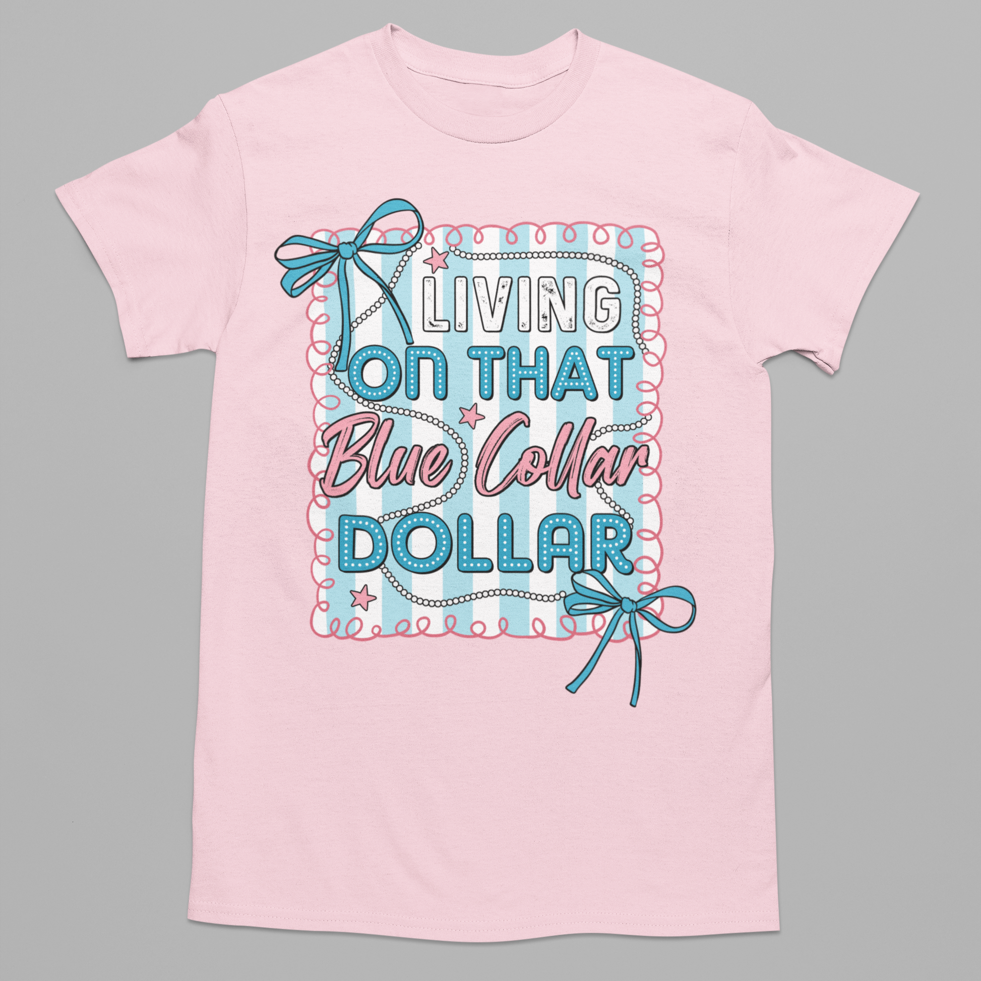 Celebrate hardworking women with the Blue Collar Dollar Graphic Tee. Featuring cute bows and bright colors, this shirt embodies big hustle energy and pride in earning every dollar. Perfect for women who live and thrive on their own terms, combining style with strength and determination.