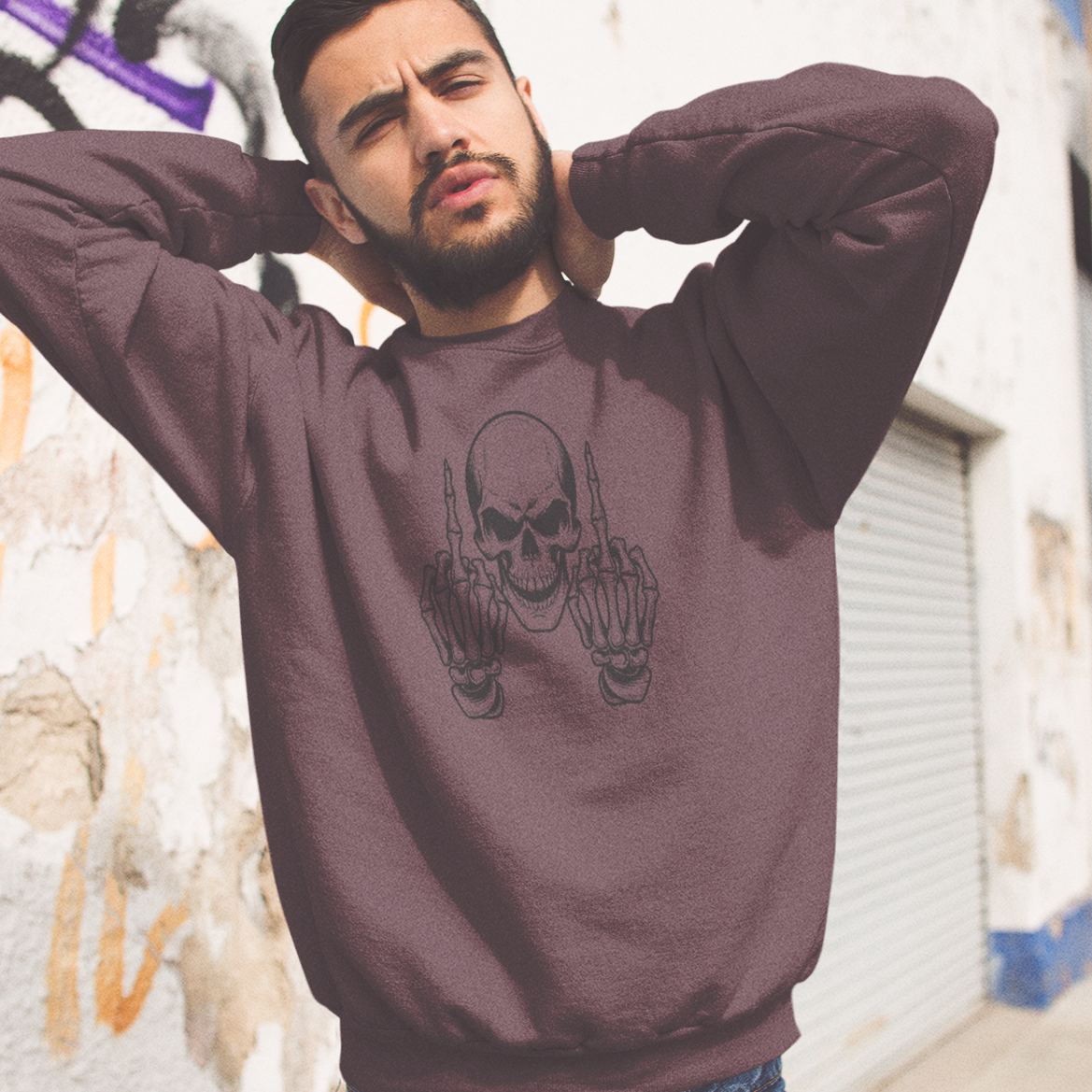 Make a bold statement without saying a word in the Bone To Be Rude Graphic Sweatshirt. Featuring a striking skeleton design, this sweatshirt doubles the attitude and lets your style do all the talking. Perfect for those who want to stand out with edgy, effortless cool.