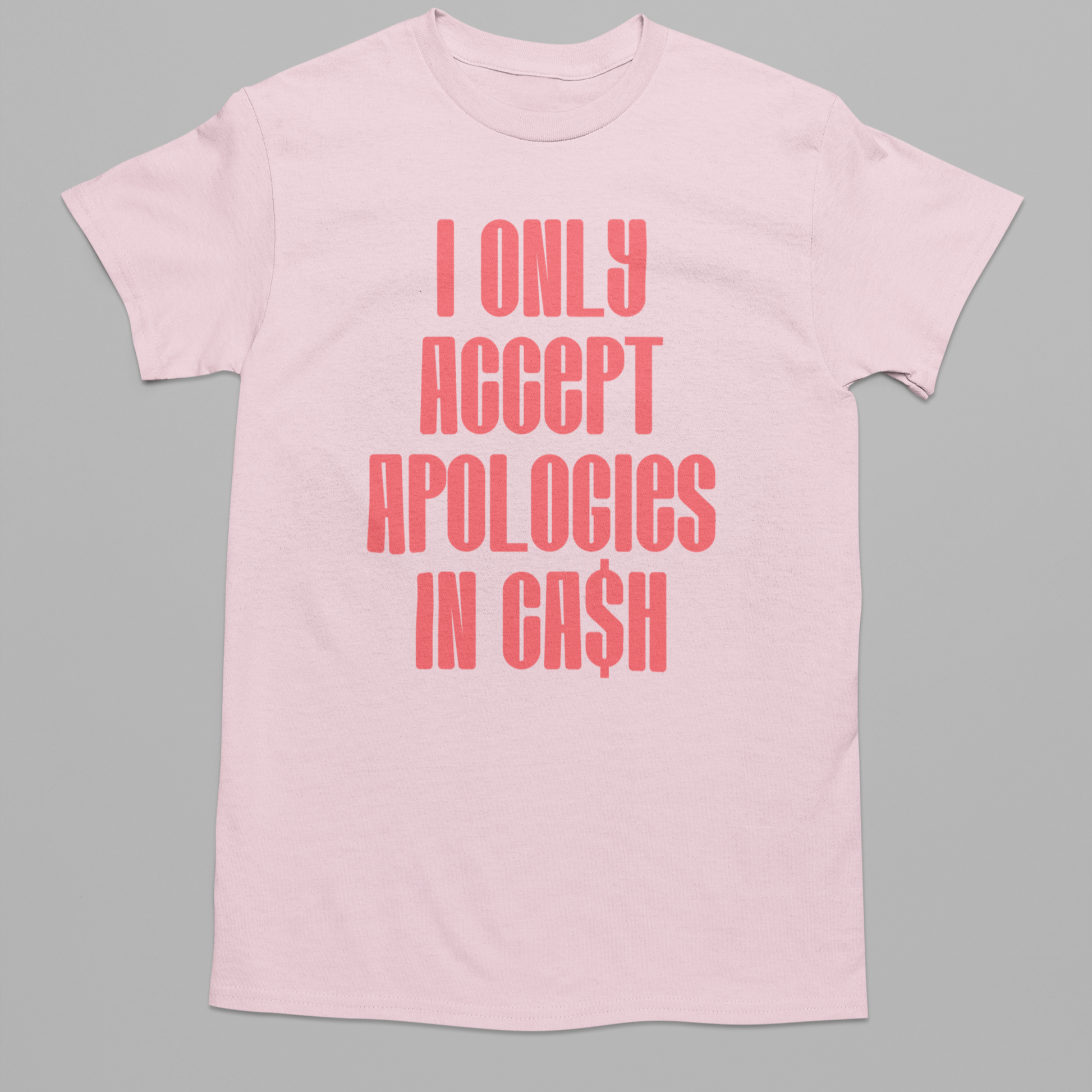 Make a statement with the Cash Apologies Only Graphic Tee. This bold shirt tells it like it is—no empty sorrys, only those with a dollar sign. Perfect for anyone who values honesty and straightforwardness, it’s a confident addition to your wardrobe that speaks volumes without saying much.