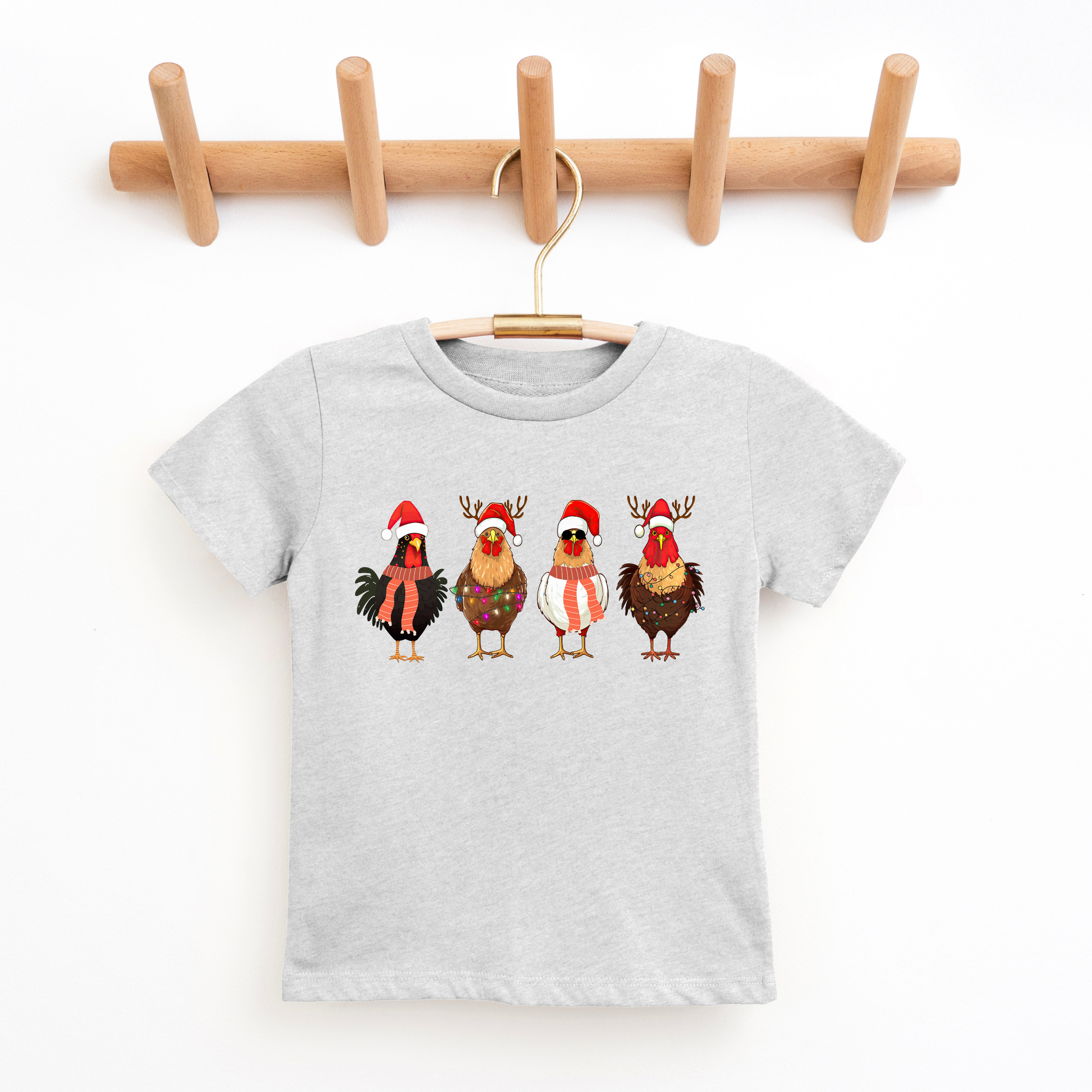 Bring some barnyard cheer to the holidays with this Kids Christmas Chicken T-Shirt! Featuring four festive chickens dressed up in Santa hats, reindeer antlers, and cozy scarves, this shirt is the perfect mix of funny and adorable. Available in multiple colors, it’s great for school parties, family photos, or just celebrating the season with a farmyard twist.