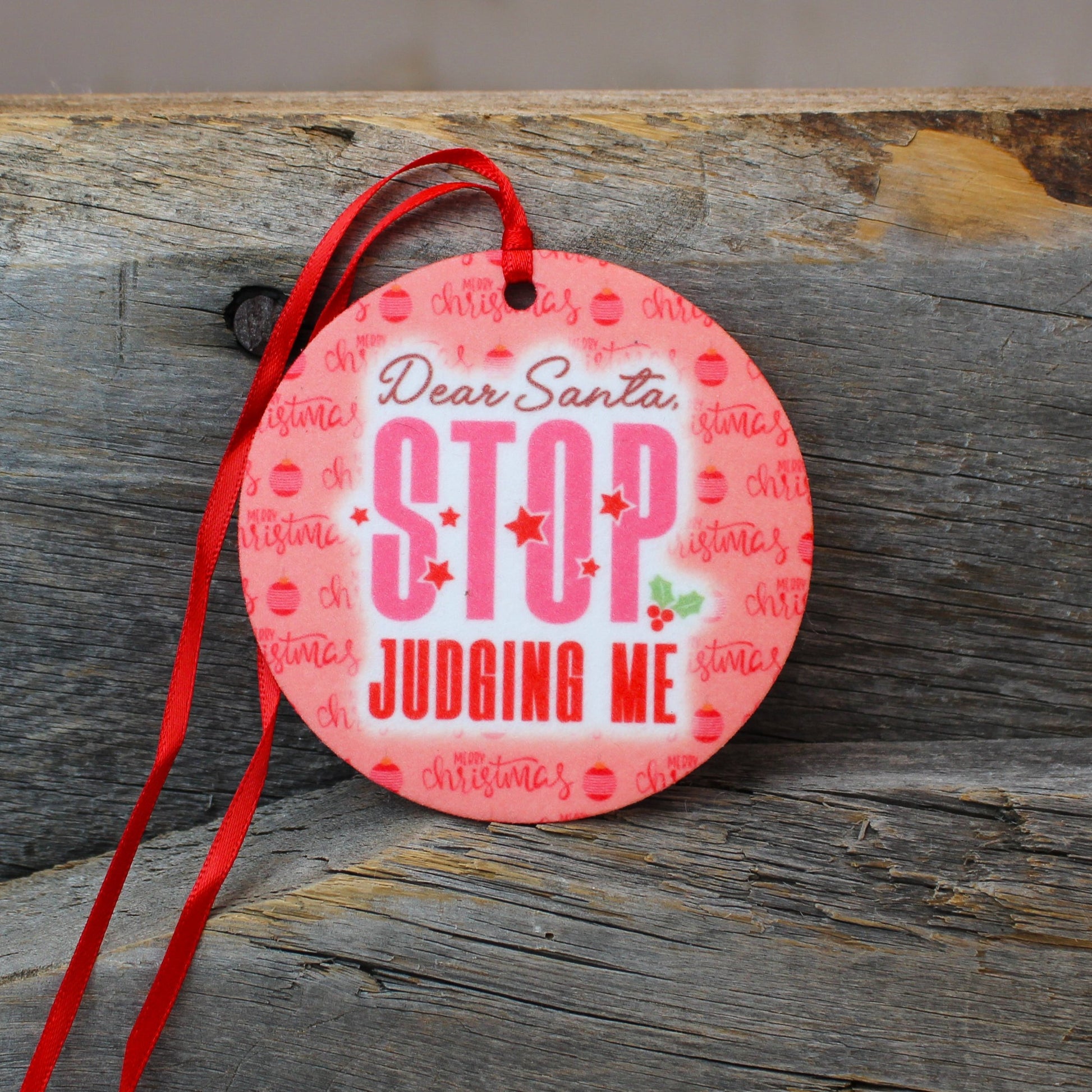 Dear Santa Stop Judging Me Re-Scentable Round Car Freshener