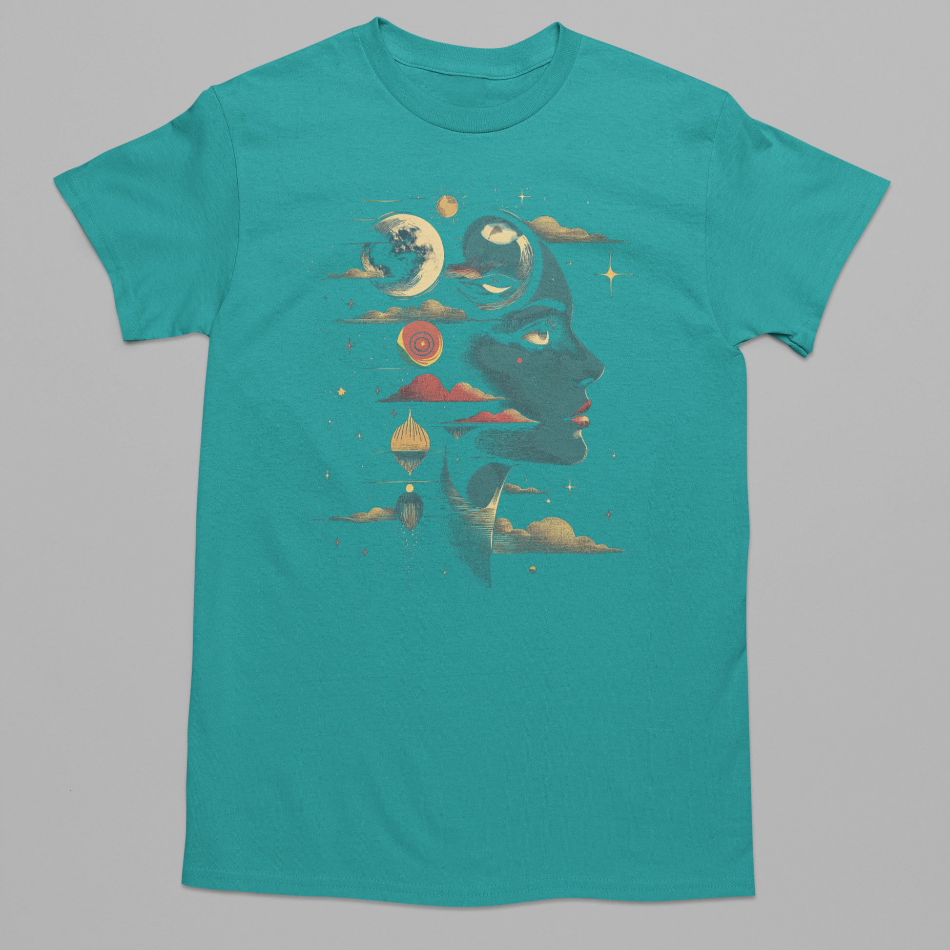 Dive into surreal skies and celestial dreams with the Dreamscape Gaze Graphic Tee. This trippy design captures the art of getting lost in your thoughts, perfect for those who embrace imagination and wonder. Wear your daydreams and let your mind wander freely wherever you go.