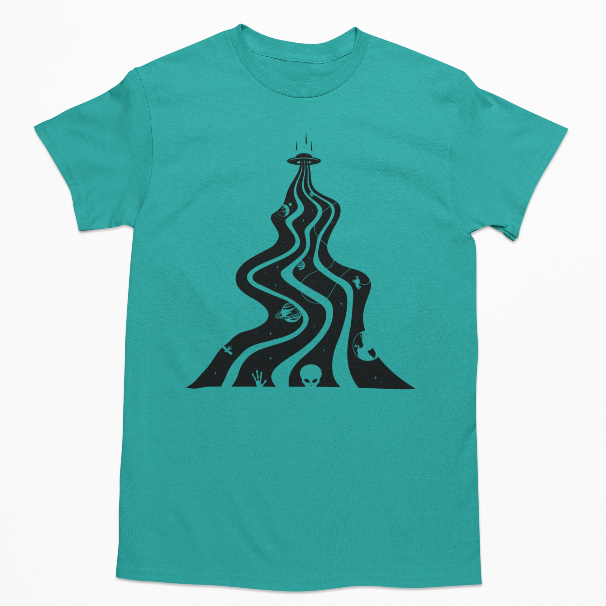 The Extraterrestrial Graphic Tee features an alien with hypnotic eyes that challenge your perception of reality. Fun, funky, and intriguingly weird, this design is perfect for those who love to stand out and embrace the unexpected. Add a cosmic twist to your wardrobe with this captivating tee.