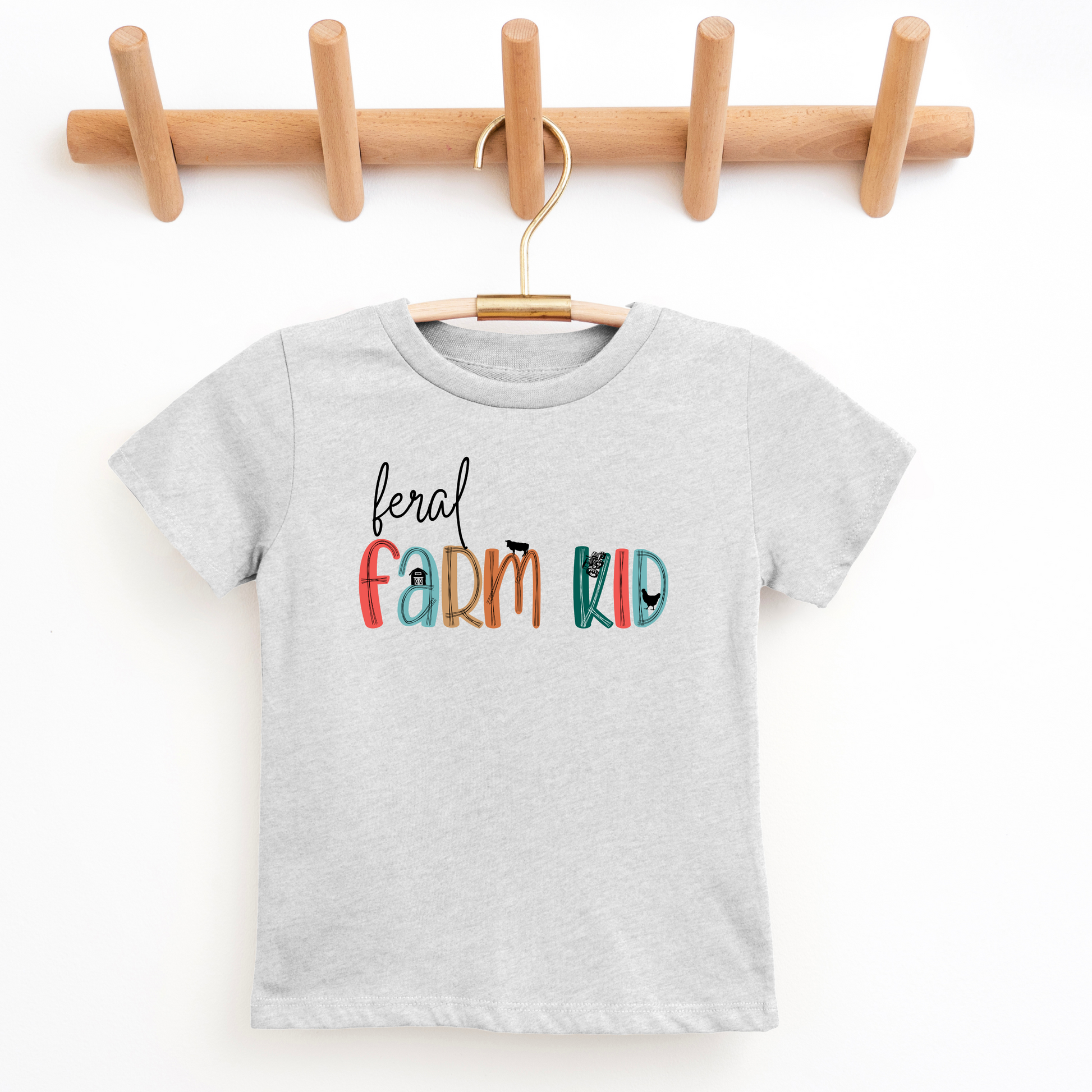 This tee is made for the barefoot, mud-covered, chicken-chasing kind of kid—the kind that runs wild and free from sunup to sundown. Featuring the phrase "feral farm kid" in fun, colorful letters, it’s the perfect blend of cute and country chaos. Soft, comfy, and full of personality—just like your little one.