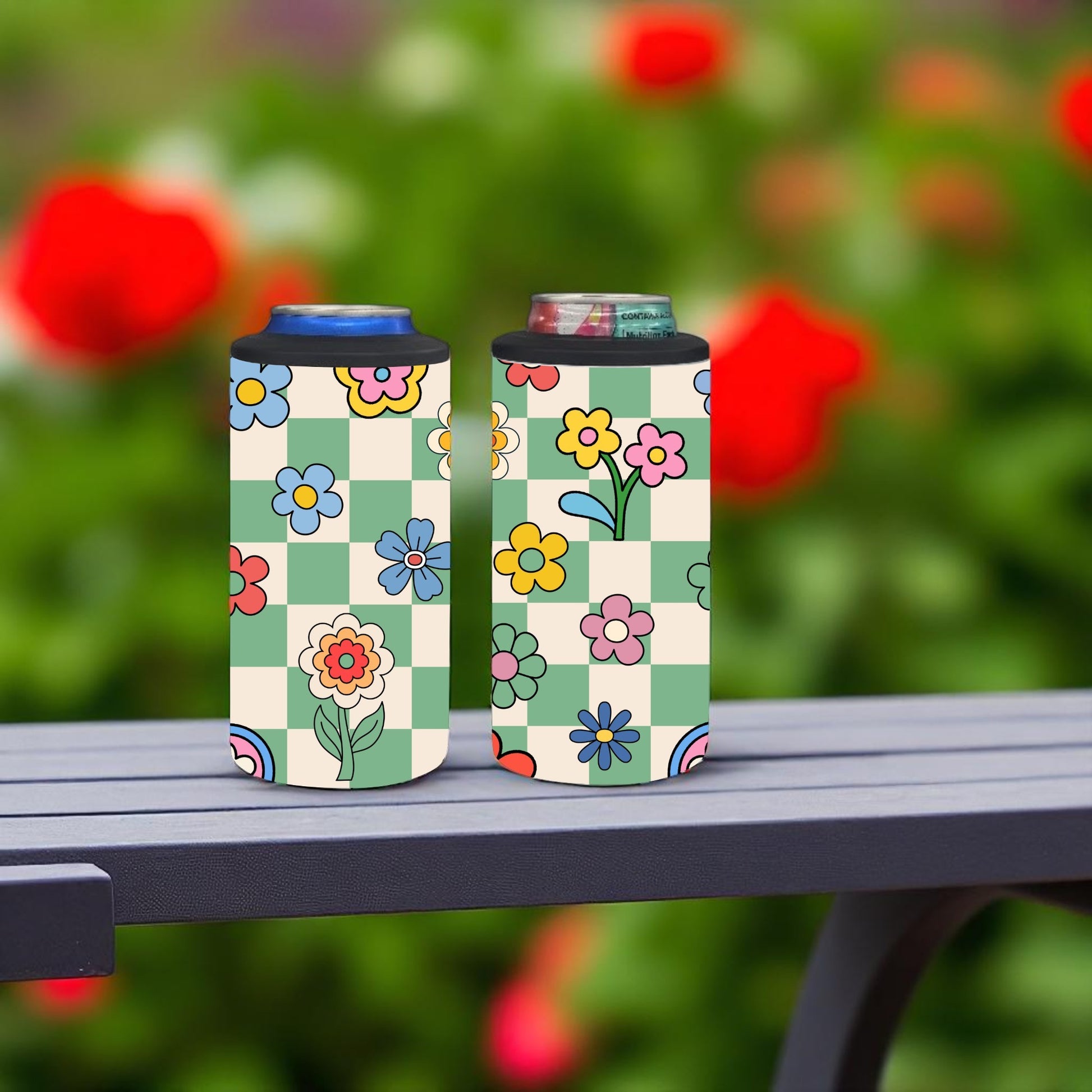 Flower Patch Checkers 4-in-1 Can Cooler Cup
