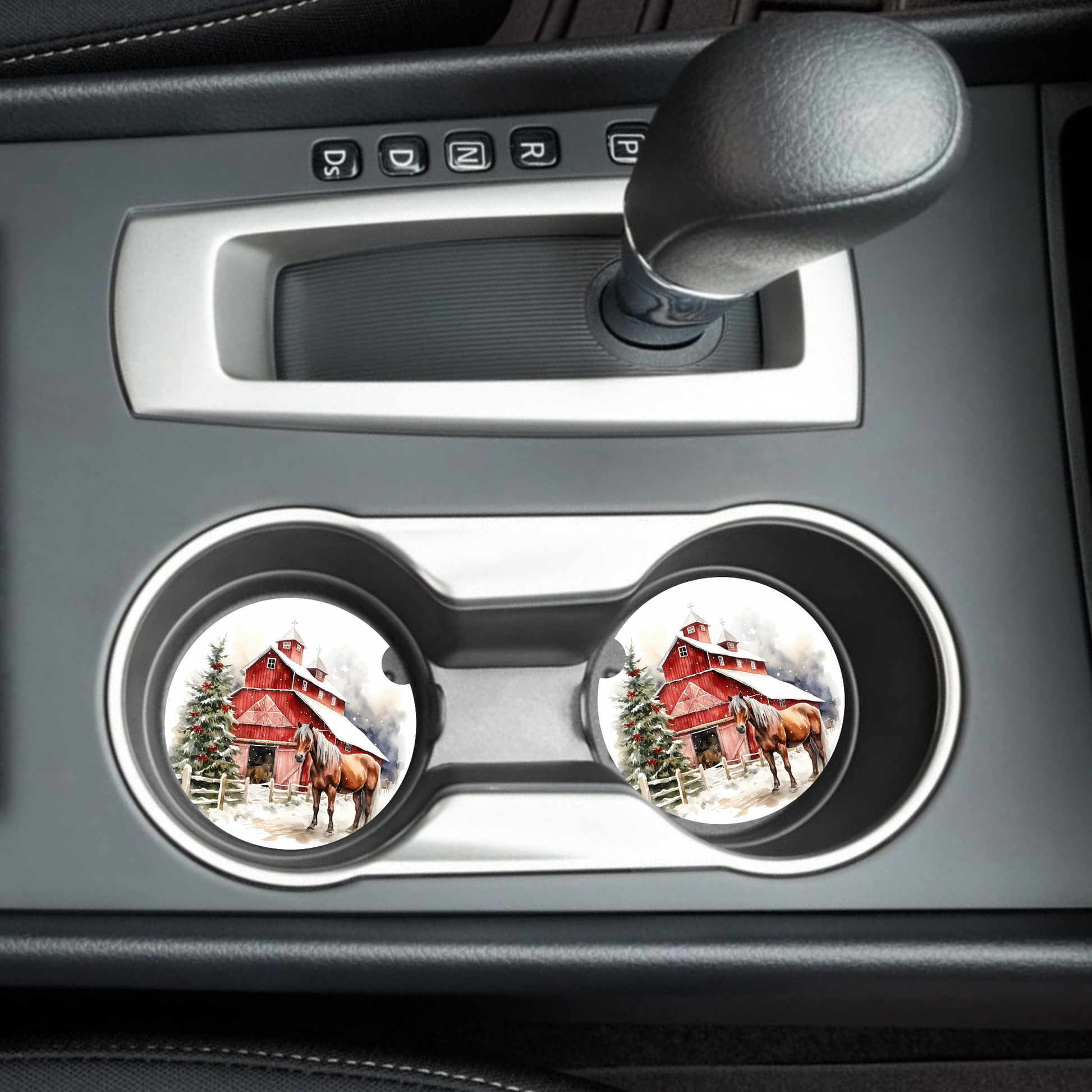 Infuse your car with rustic holiday charm using the Frosted Stable Glow Car Coaster. Featuring a snow-dusted barn and a noble horse standing guard, this design glows with festive warmth while protecting your cup holder from spills. Ideal for those who appreciate classic country spirit throughout the holiday season.