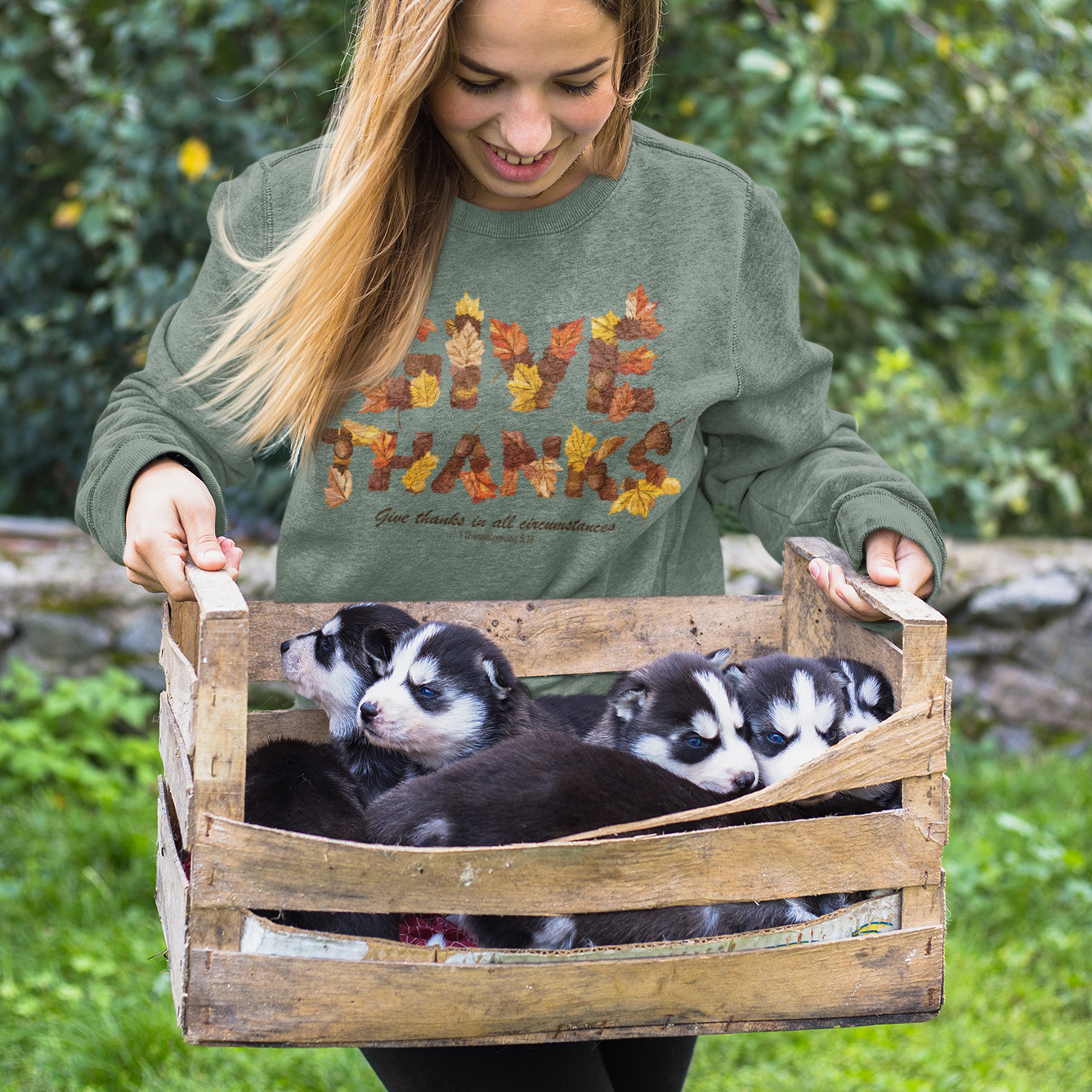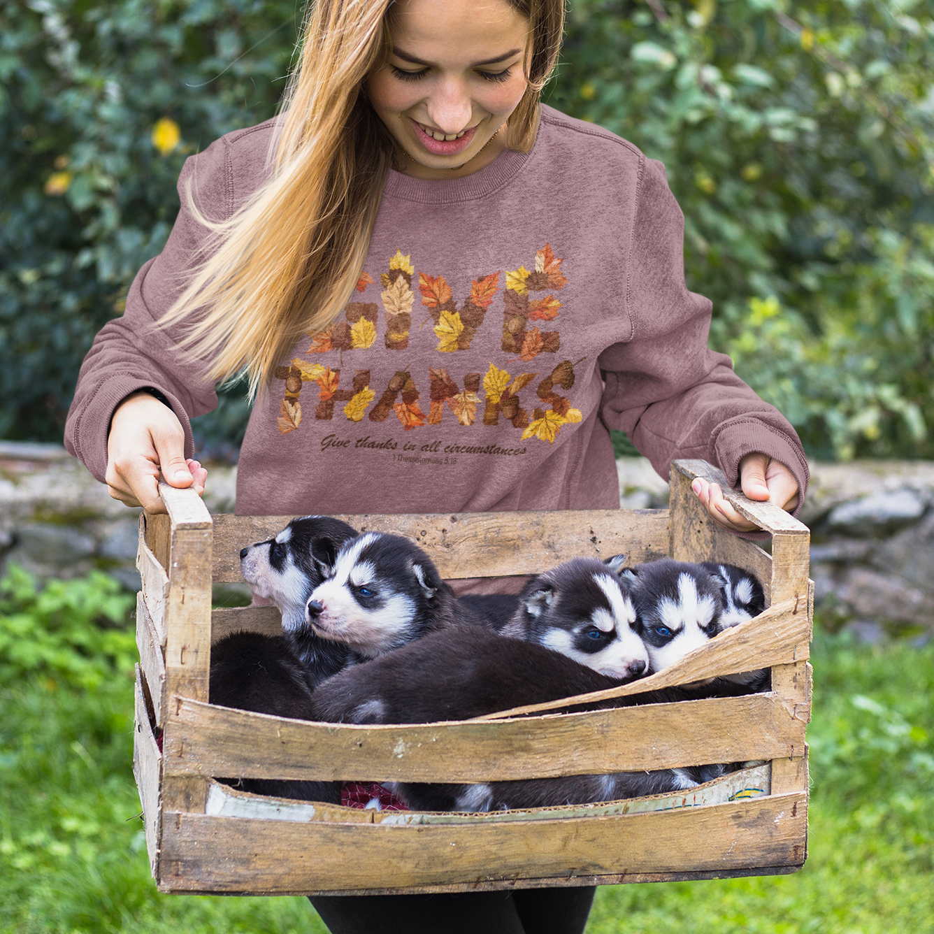 Embrace the spirit of gratitude all year with the Give Thanks Graphic Sweatshirt. Featuring vibrant autumn leaves and the inspiring message from Thessalonians 5:18, this cozy sweatshirt combines faith and style effortlessly. Perfect for layering on crisp days, it offers warmth while reminding you to give thanks in every season. Elevate your wardrobe with meaningful comfort that speaks to your heart.