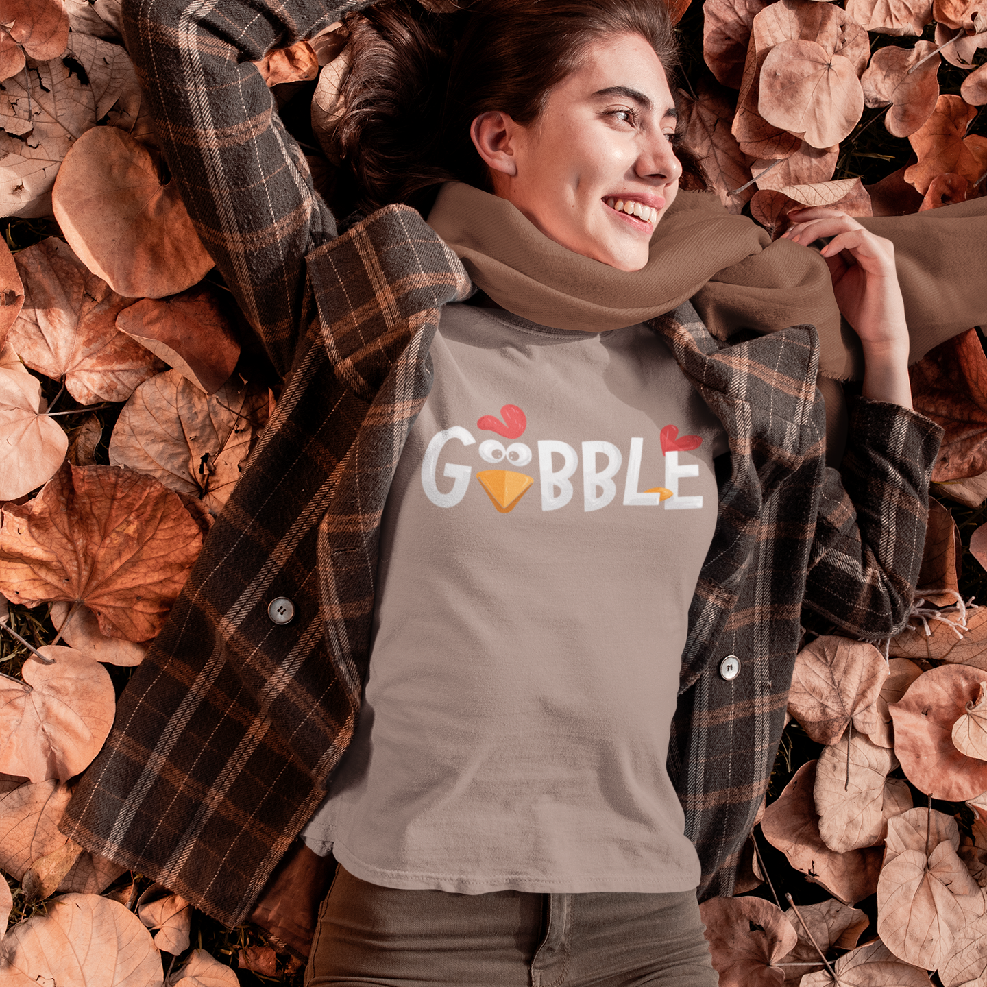 Celebrate fall in style with the Gobble Graphic Tee. Featuring playful turkey-inspired letters that spell “GOBBLE,” this shirt adds a fun, festive touch to your casual wardrobe. Perfect for cozy autumn days, it blends simplicity with charm for a look that’s both cute and bold.