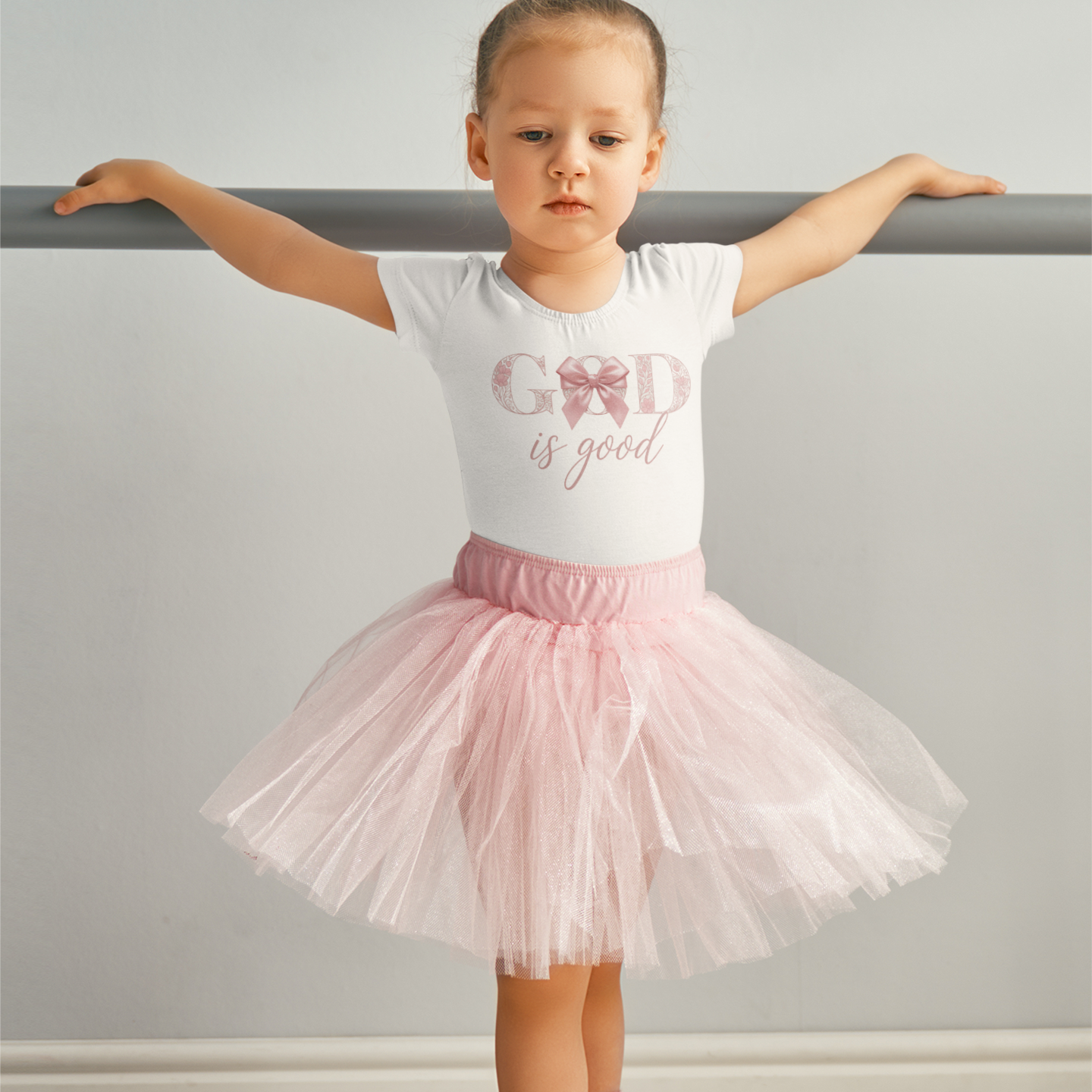 The God is Good Lace Graphic Tee combines sweet style with a heartfelt message. Delicate lace details and a soft bow add charm to this playful tee, making it a lovely way to celebrate faith and share that God is good every day.