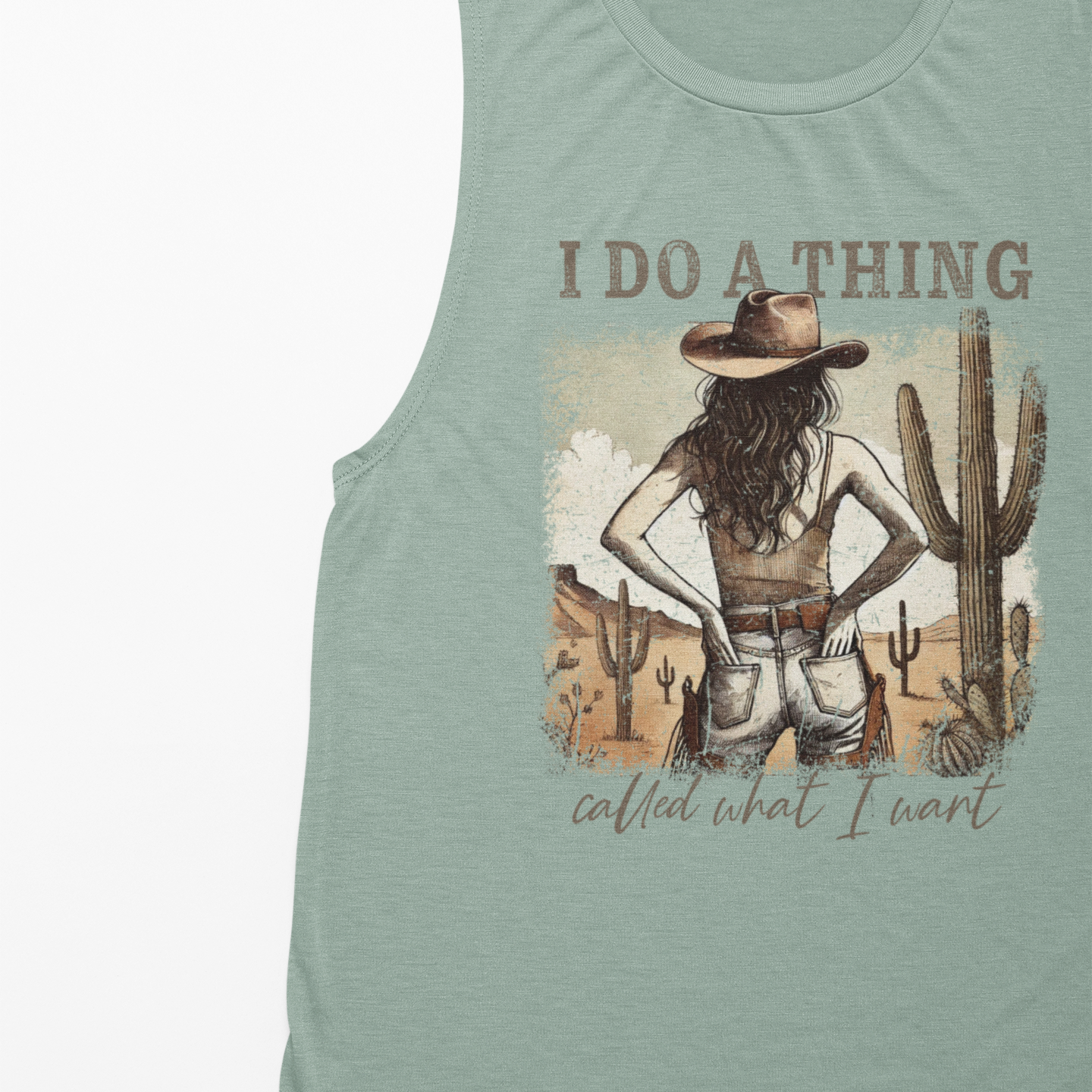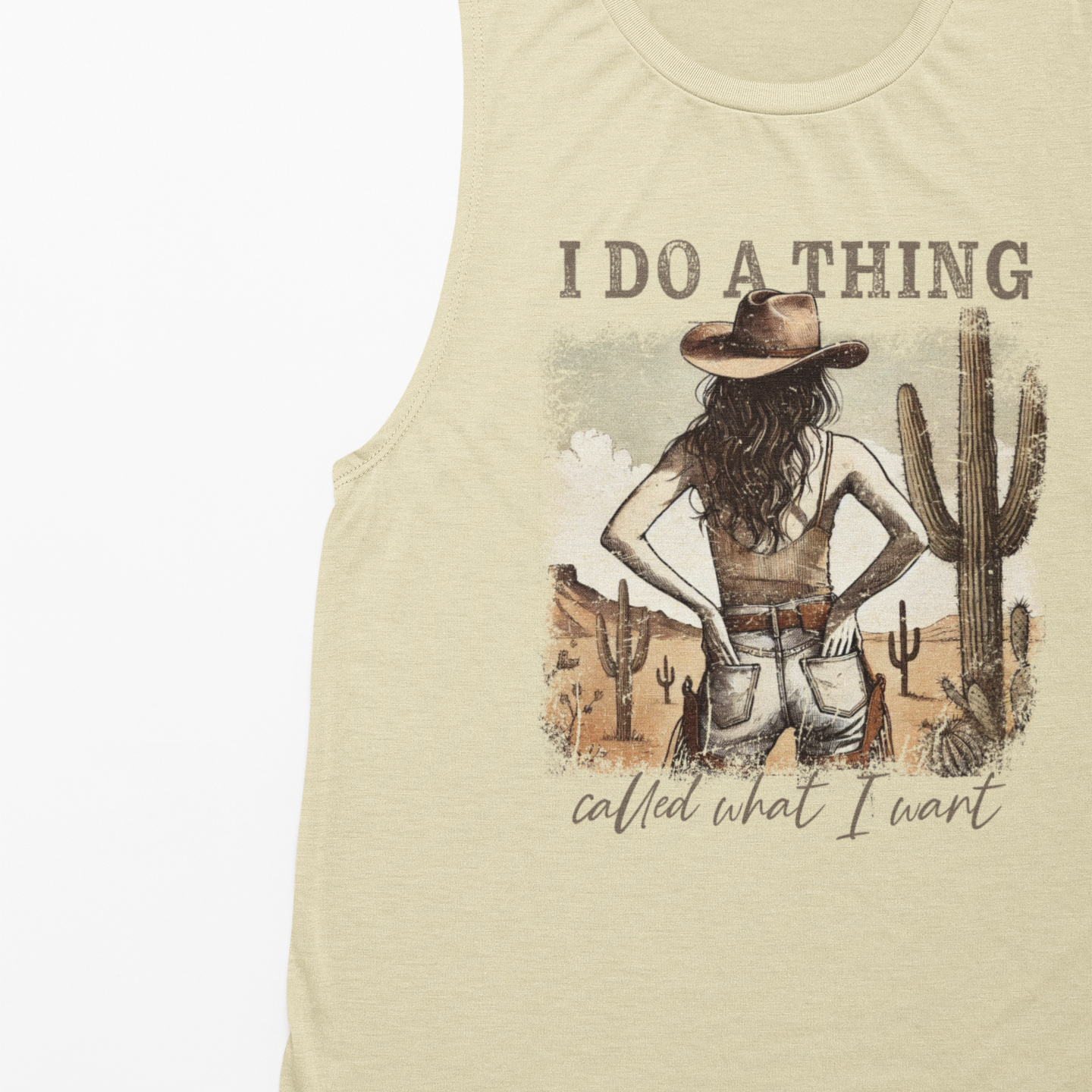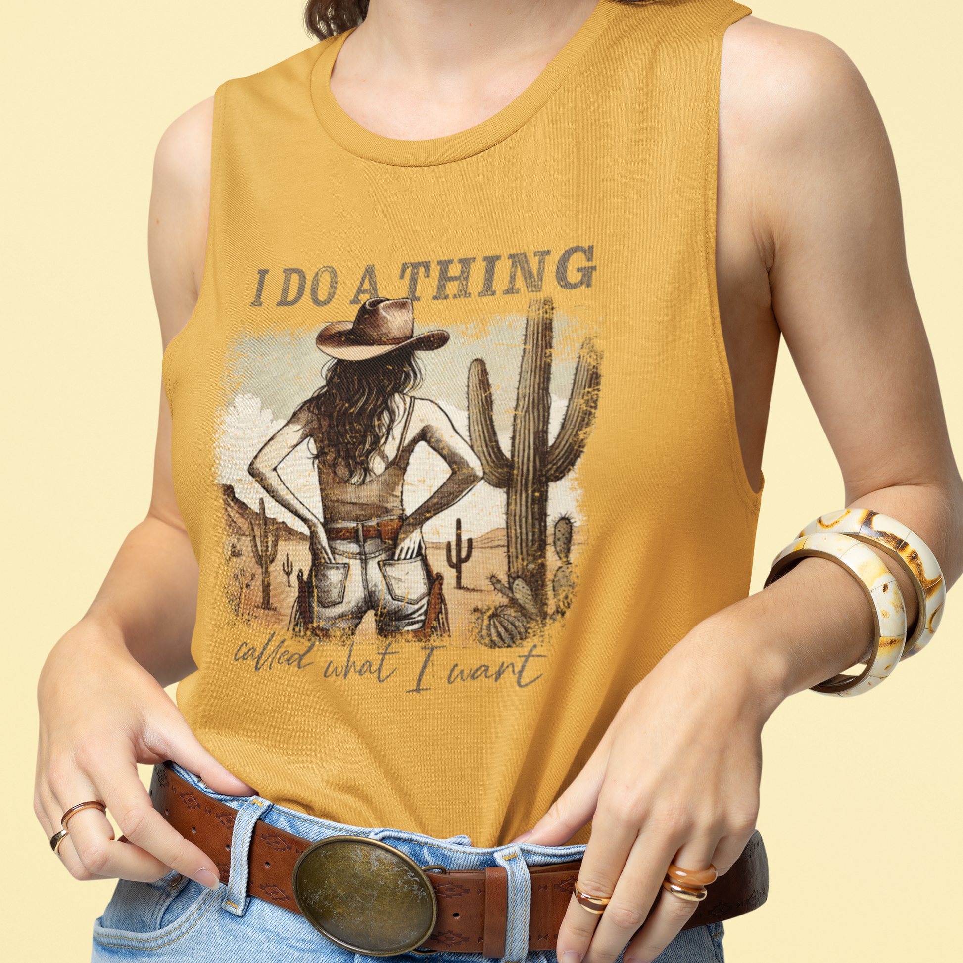 Unleash your inner rebel with the "I Do A Thing Called What I Want" Graphic Tank. This western-inspired crop top exudes confidence and a carefree attitude, perfect for pairing with your favorite denim, boots, or even bare feet in the sand. Because let's face it, doing what you want is always in style.