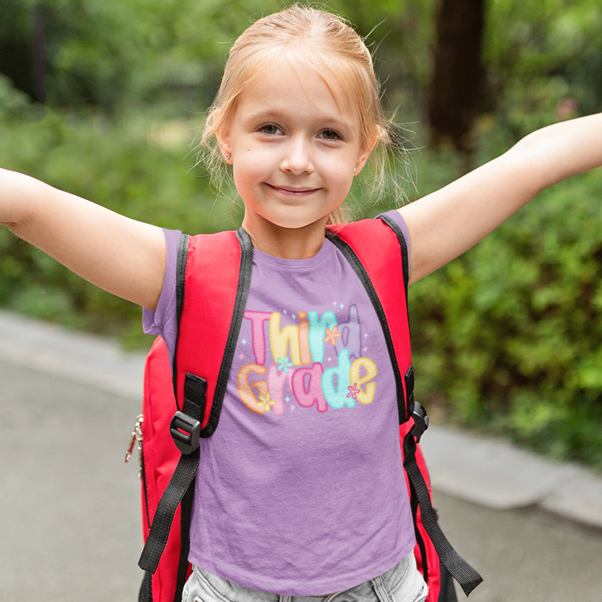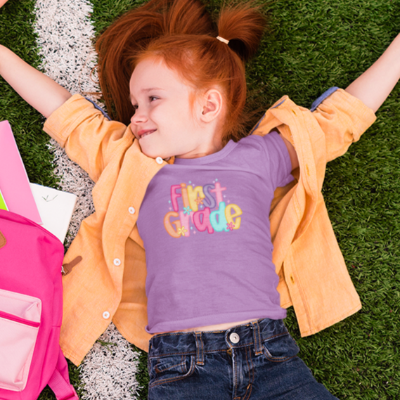 Say hello to school with sparkles, flowers, and flair! The Groovy Grade Vibes Series Toddler Graphic Tee brings colorful, cheerful 70s energy to every grade, making learning extra fun and groovy for your little one.