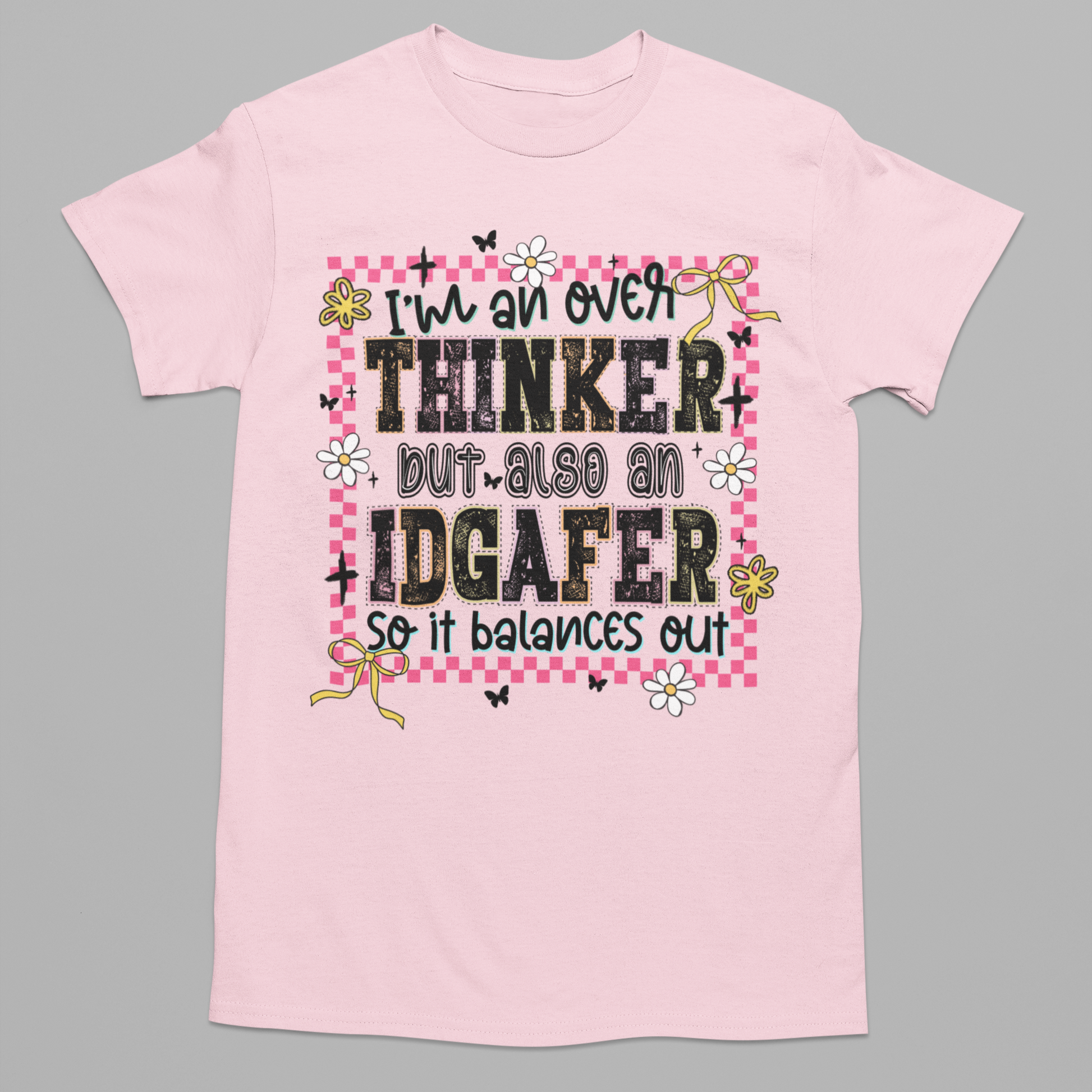 Embrace your perfectly balanced attitude with the IDGAFER Graphic Tee. Sparkling with glitter and packed with sass, this shirt is made for the girl who overthinks everything but still doesn’t give a flying flip. Show off your confident, carefree spirit wherever you go.