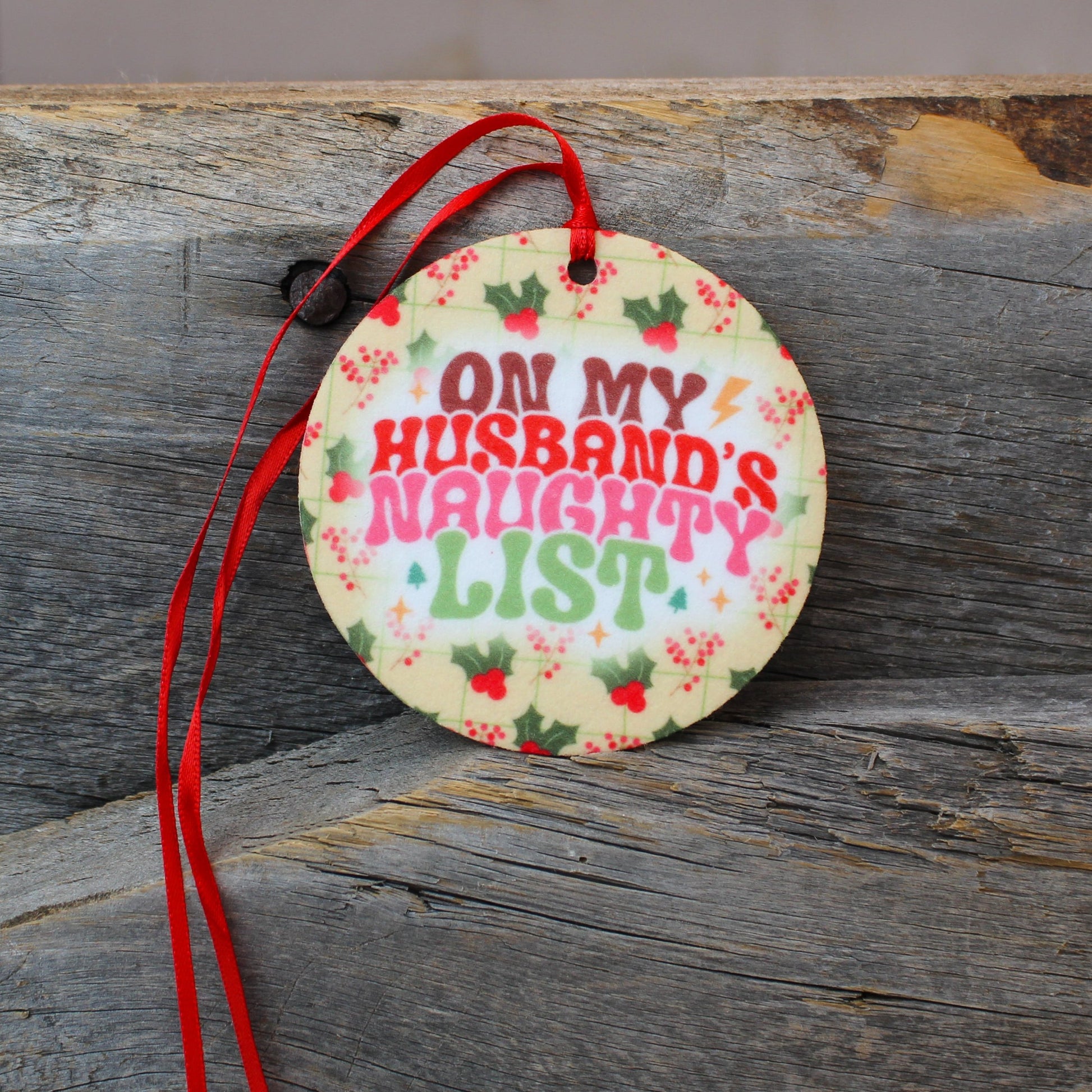 Husbands Naughty List Re-Scentable Round Car Freshener