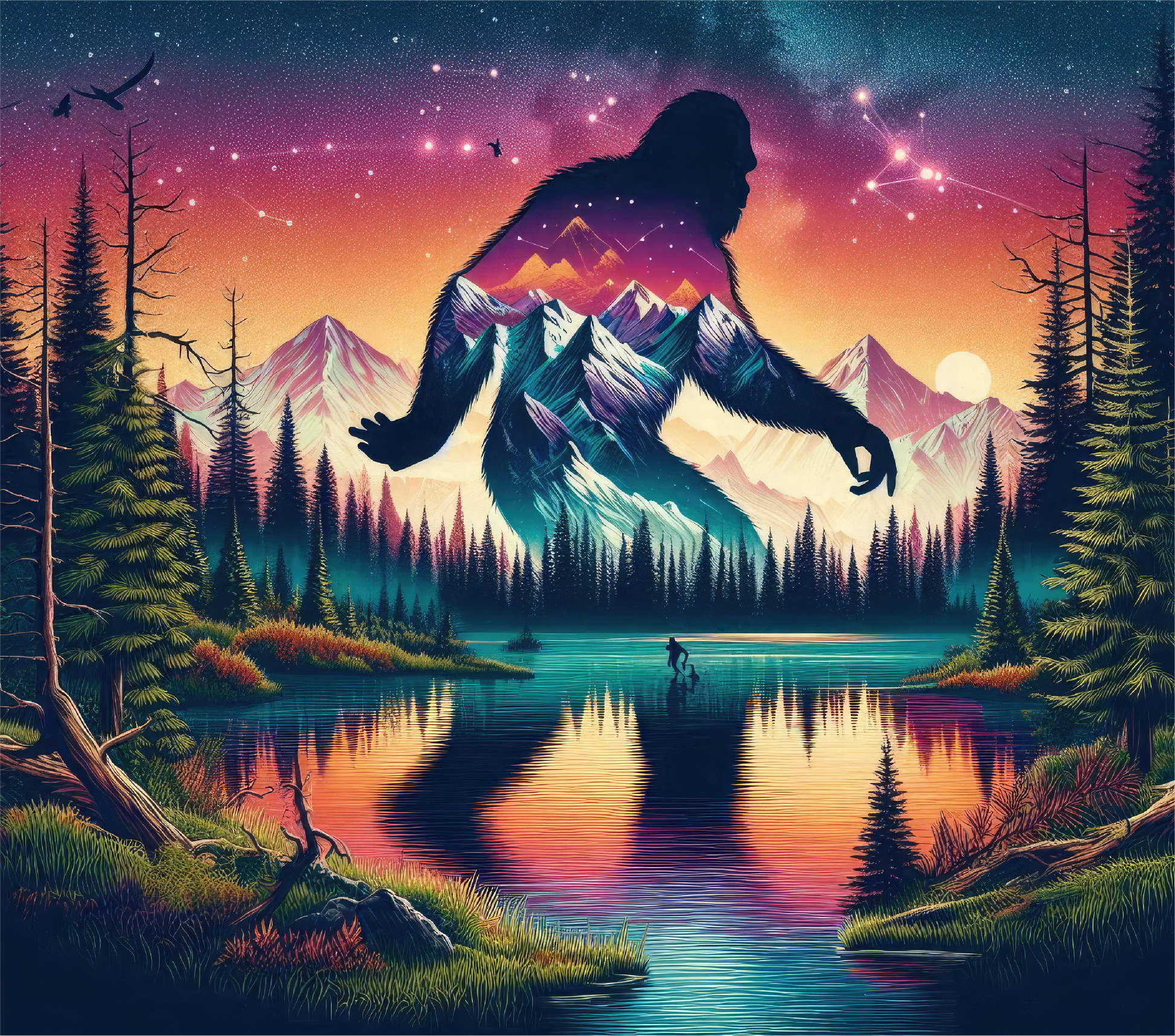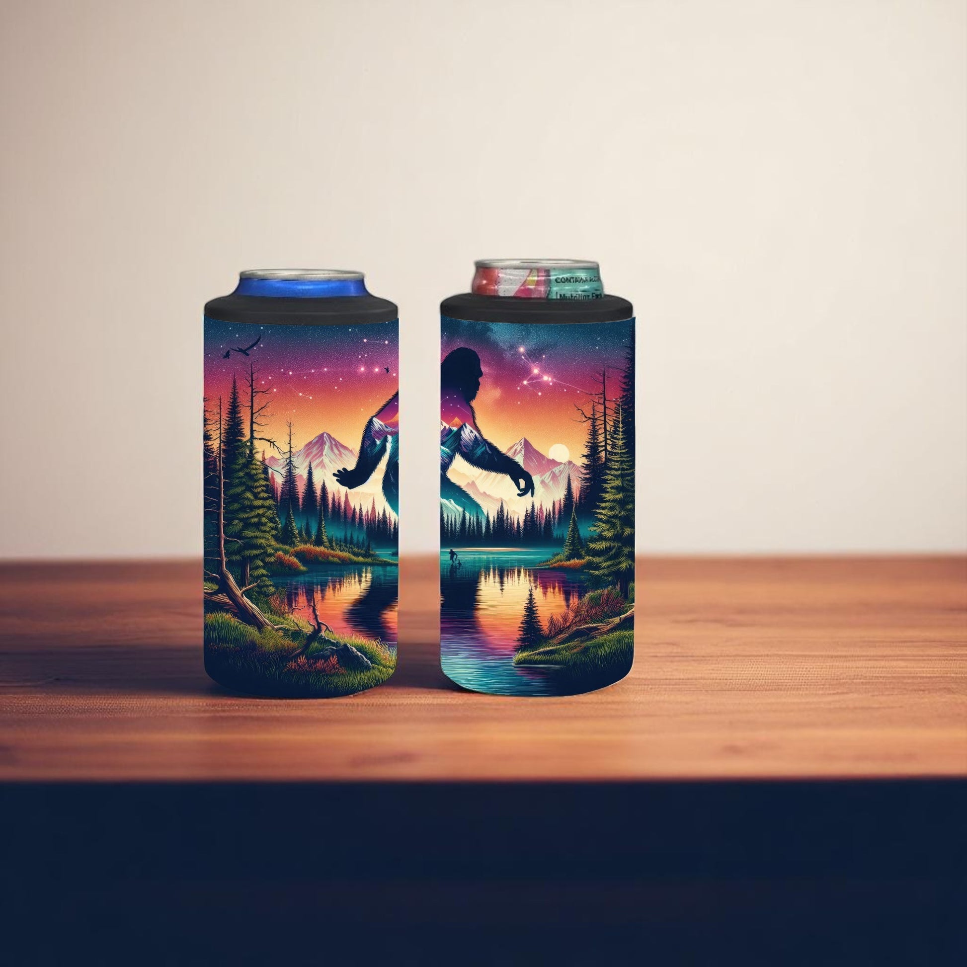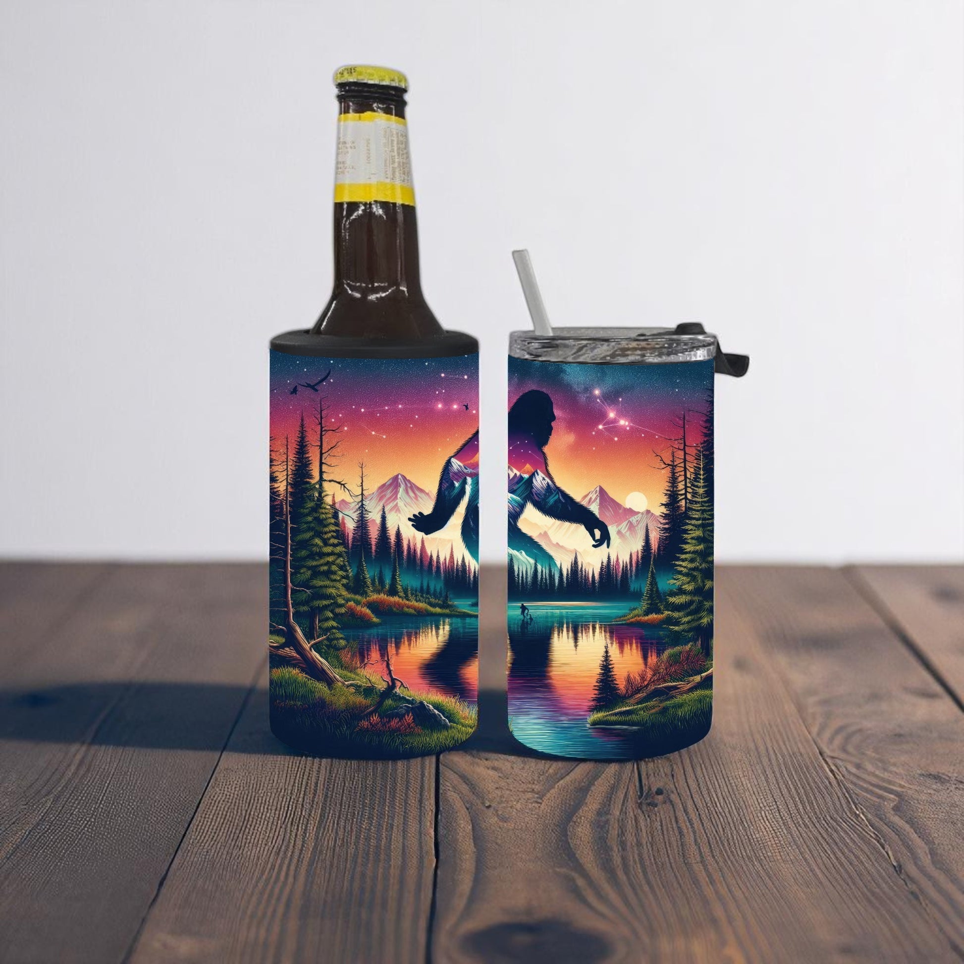 Embrace the mystery of the midnight mountains with the 4-in-1 Can Cooler Cup, where Bigfoot roams beneath a cosmic twilight sky. Stay cool, stay curious, and let the adventure begin!