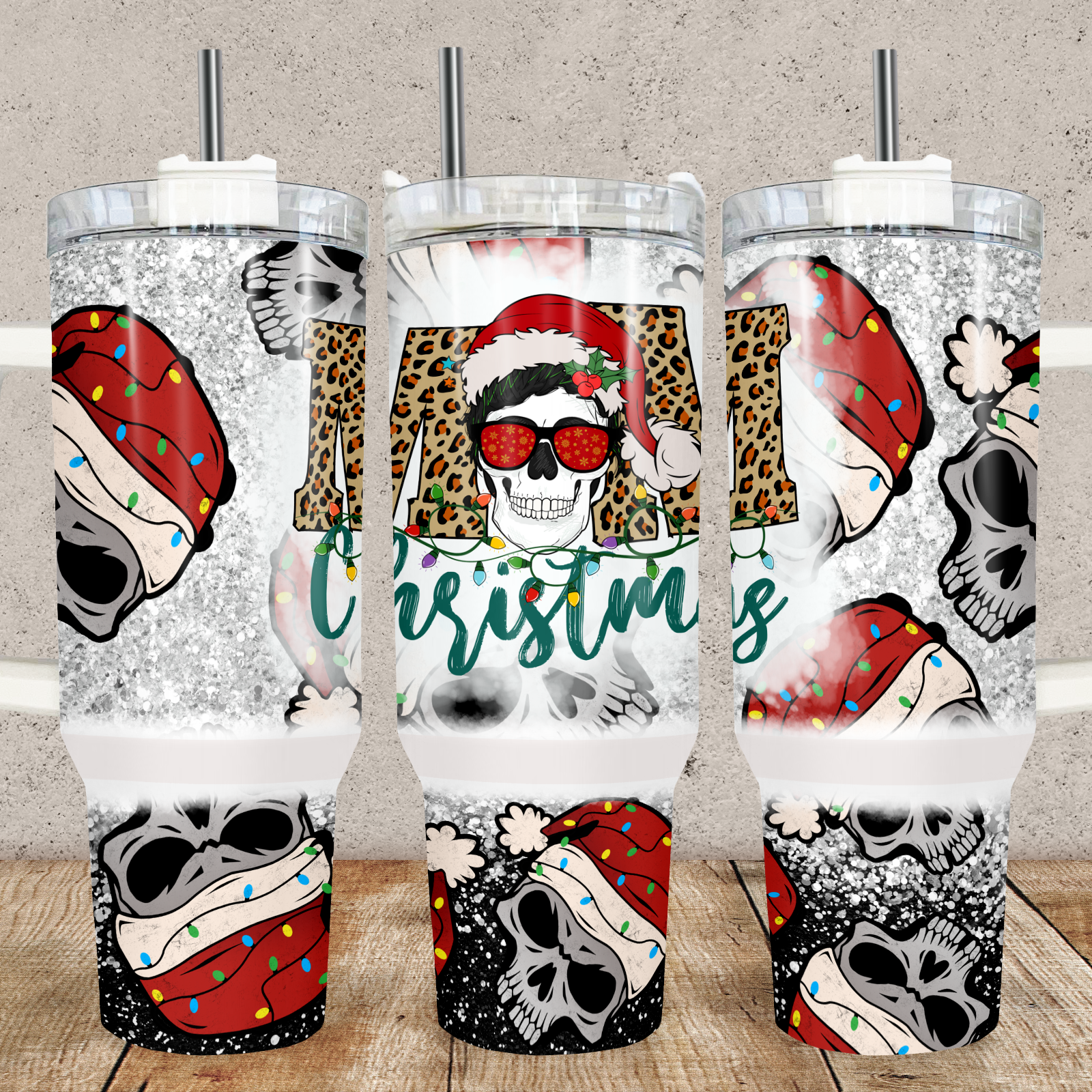 Show off your bold holiday style with our “Mom Christmas” skull tumbler! Featuring a festive skull decked out in a Santa hat, red sunglasses, and wrapped in holiday lights, this tumbler brings a playful edge to Christmas. The design includes leopard print accents and a sparkling silver background, making it a standout piece for anyone who loves a bit of sass in their seasonal decor. Crafted from high-quality stainless steel, it keeps your drinks hot or cold for hours. Perfect as a unique gift or for adding a rebellious twist to your own holiday drinkware collection!