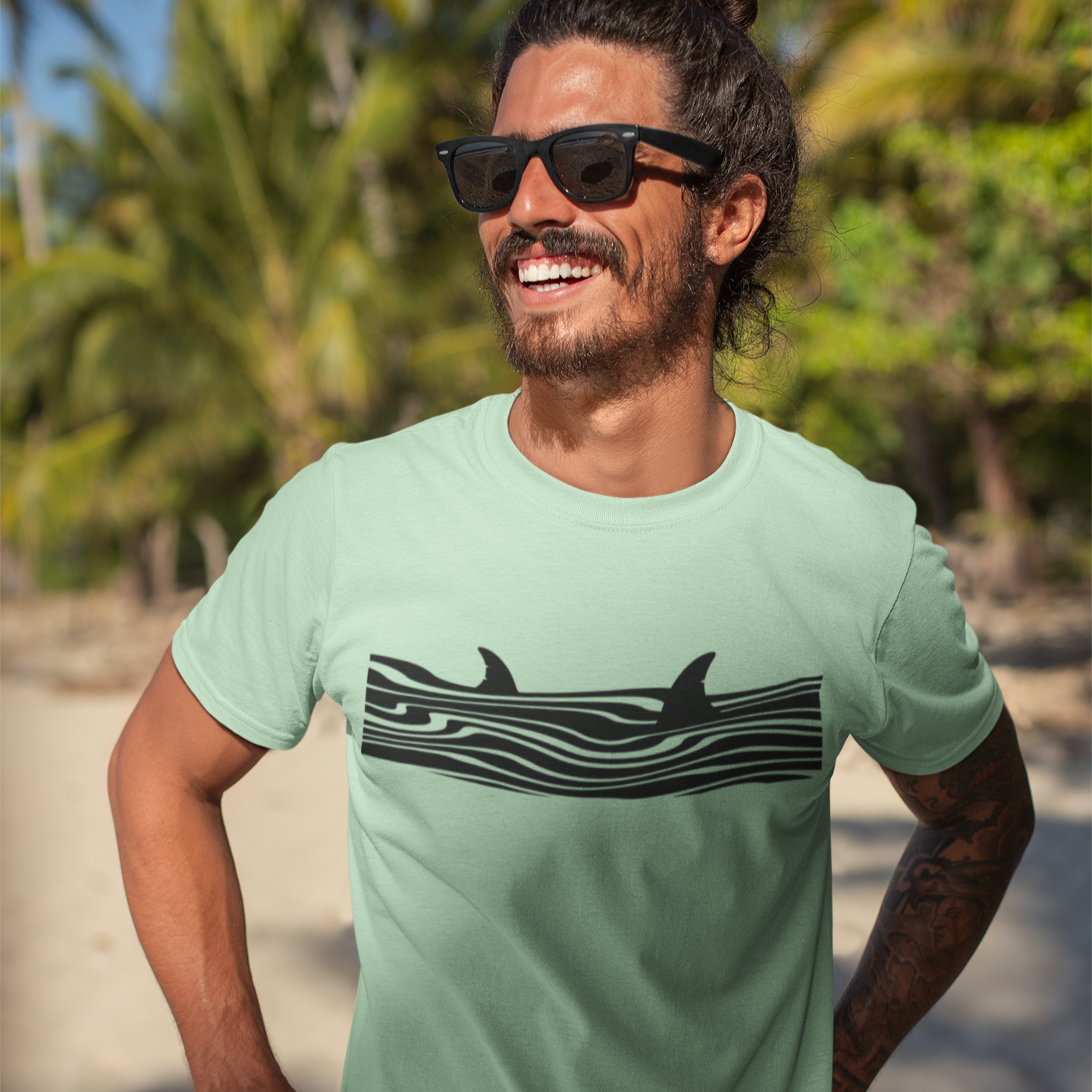 The Predator Graphic Tee features an eerie illusion of shark fins cutting through warped lines, creating a minimal yet edgy design that captures attention. Perfect for those who want to make a bold, unexpected statement with a touch of intrigue.