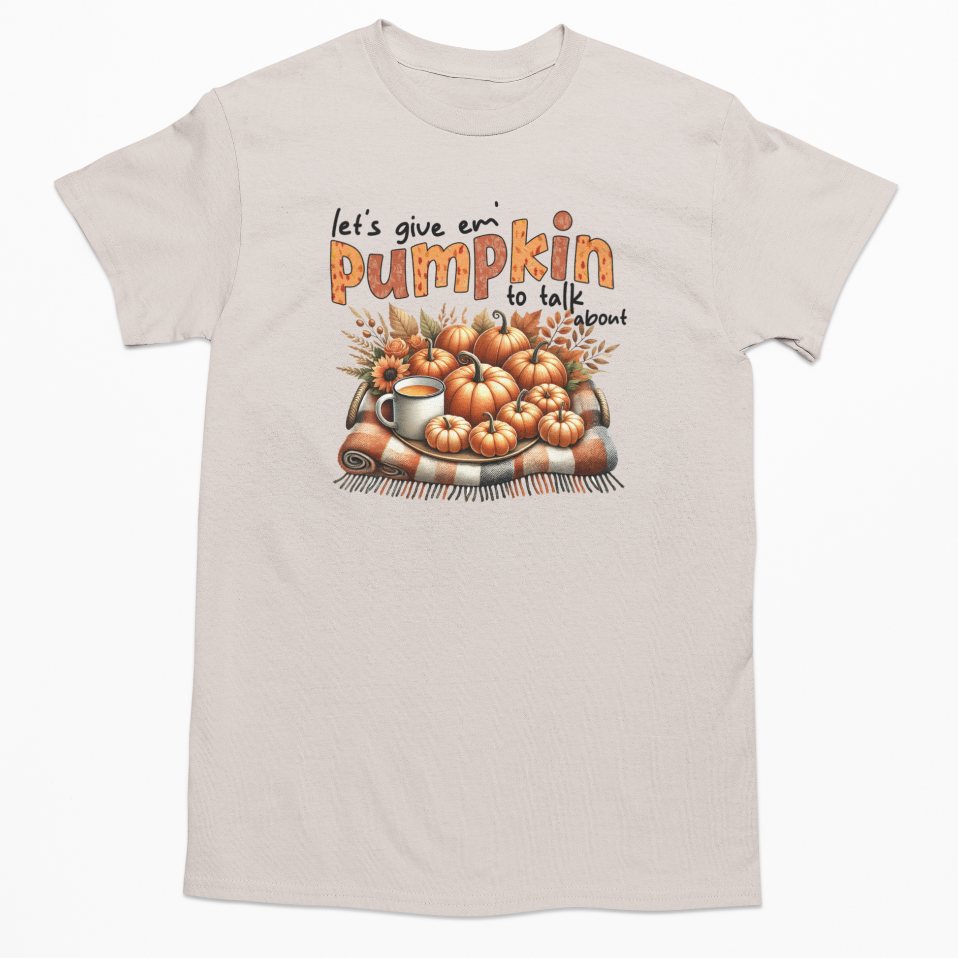 Celebrate autumn in style with the Pumpkin Talk Graphic Tee. Featuring a warm pumpkin and latte graphic paired with the witty phrase “Let’s give ’em pumpkin to talk about,” this cozy shirt is perfect for pumpkin spice lovers looking to add festive flair to their fall wardrobe.