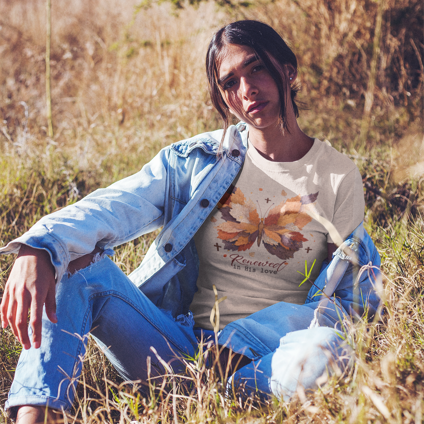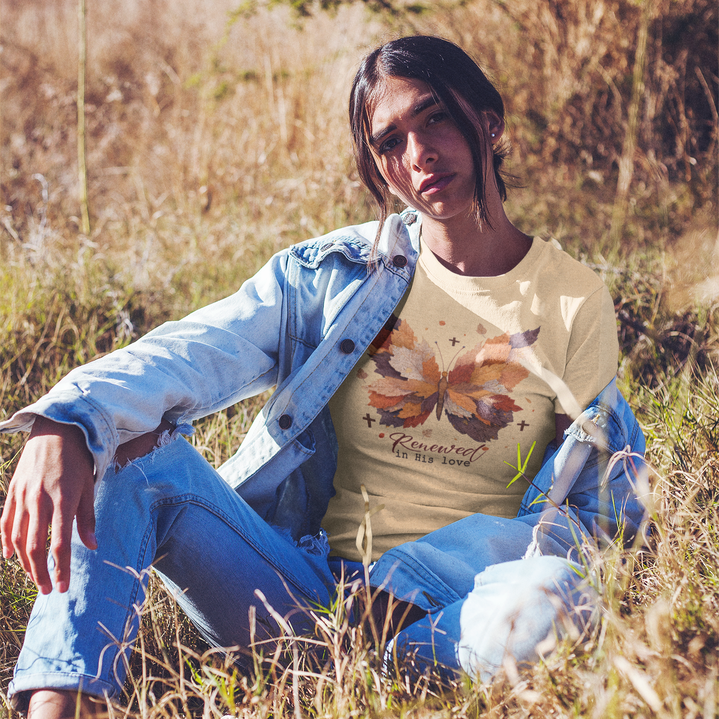 Embrace the season of renewal with the Renewed by His Love Graphic Tee. Featuring delicate fall leaves and a graceful butterfly, this tee symbolizes fresh beginnings and heartfelt transformation. Its soft design and inspiring message make it a perfect choice to uplift your spirit and style this season.