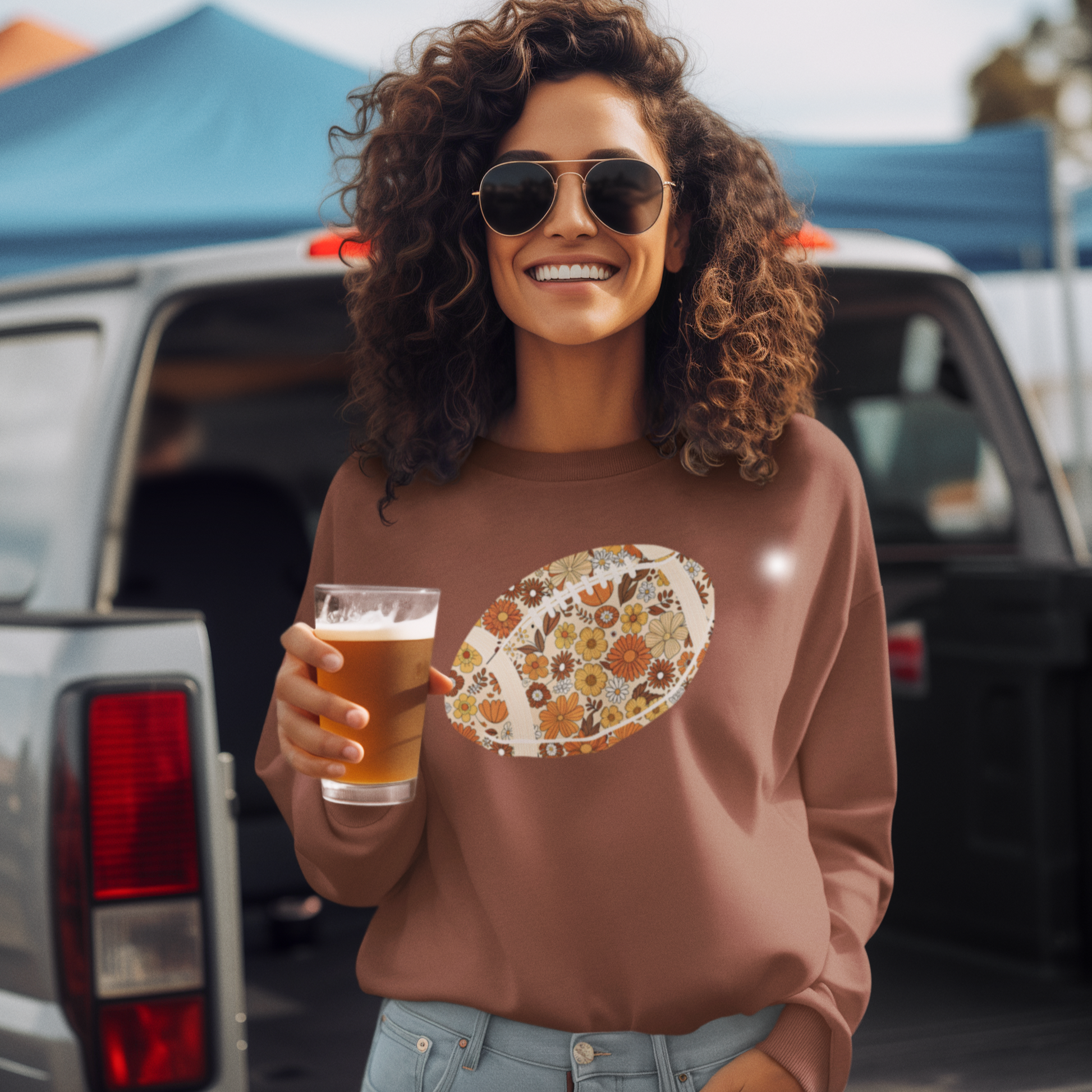 The Retro Touchdown Graphic Sweatshirt blends vintage floral charm with classic football spirit, creating a unique look full of seasonal playfulness. This unexpected design adds a retro wink that makes you stand out, while the cozy fit keeps you comfortable during every fall outing. Celebrate the season with style and personality in this standout sweatshirt.