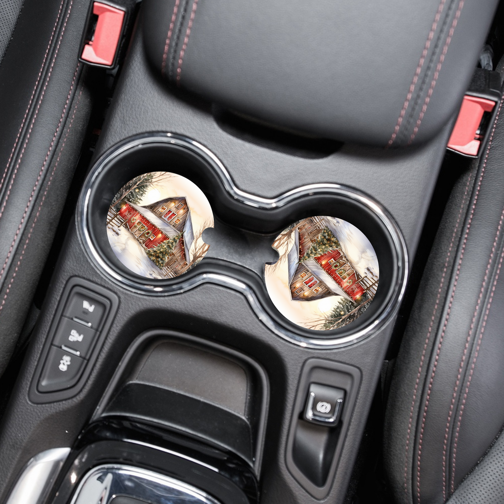Create a cozy holiday atmosphere in your car with the Rustic Sunset Car Coaster. Featuring warm lights glowing around a red barn at dusk, this design brings a touch of rustic charm while protecting your cup holders from spills and condensation. Perfect for adding a festive glow to every drive this season.