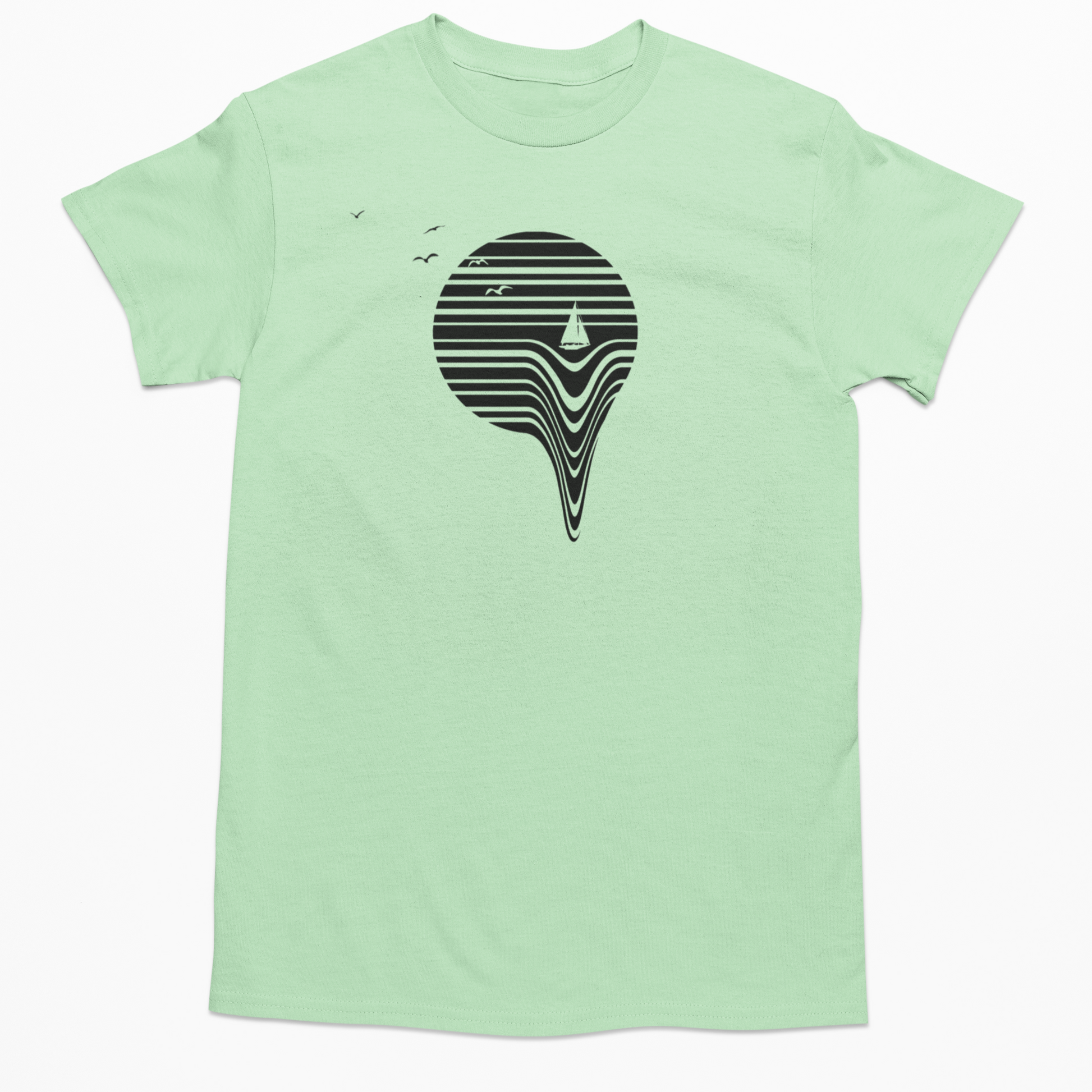 The Sailing Graphic Tee blends smooth sailing with an optical illusion in a wavey sailboat scene. Its calming, modern, and abstract design offers a fresh take on nautical style, perfect for those who appreciate artful simplicity and serene vibes. Elevate your look with this unique statement piece.