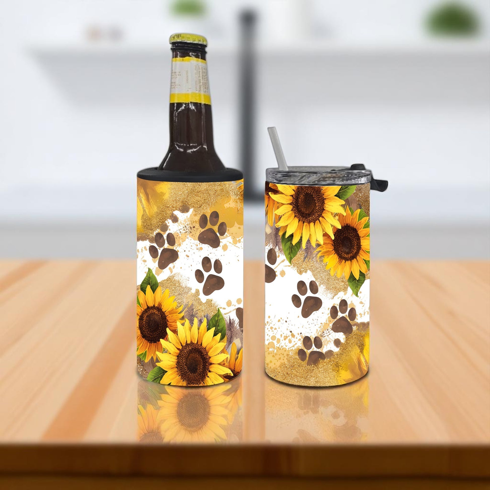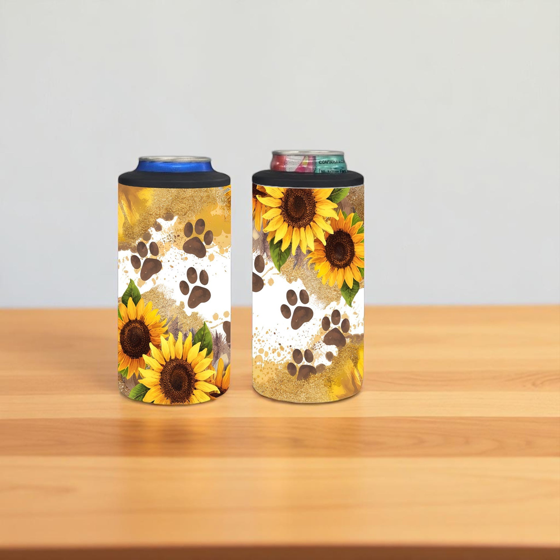 Celebrate your love for flowers and furry friends with the Sunflower Paw Parade 4-in-1 Can Cooler Cup! Featuring cheerful sunflowers, playful paw prints, and a splash of golden grunge, this cooler is perfect for the flower-loving fur mama.