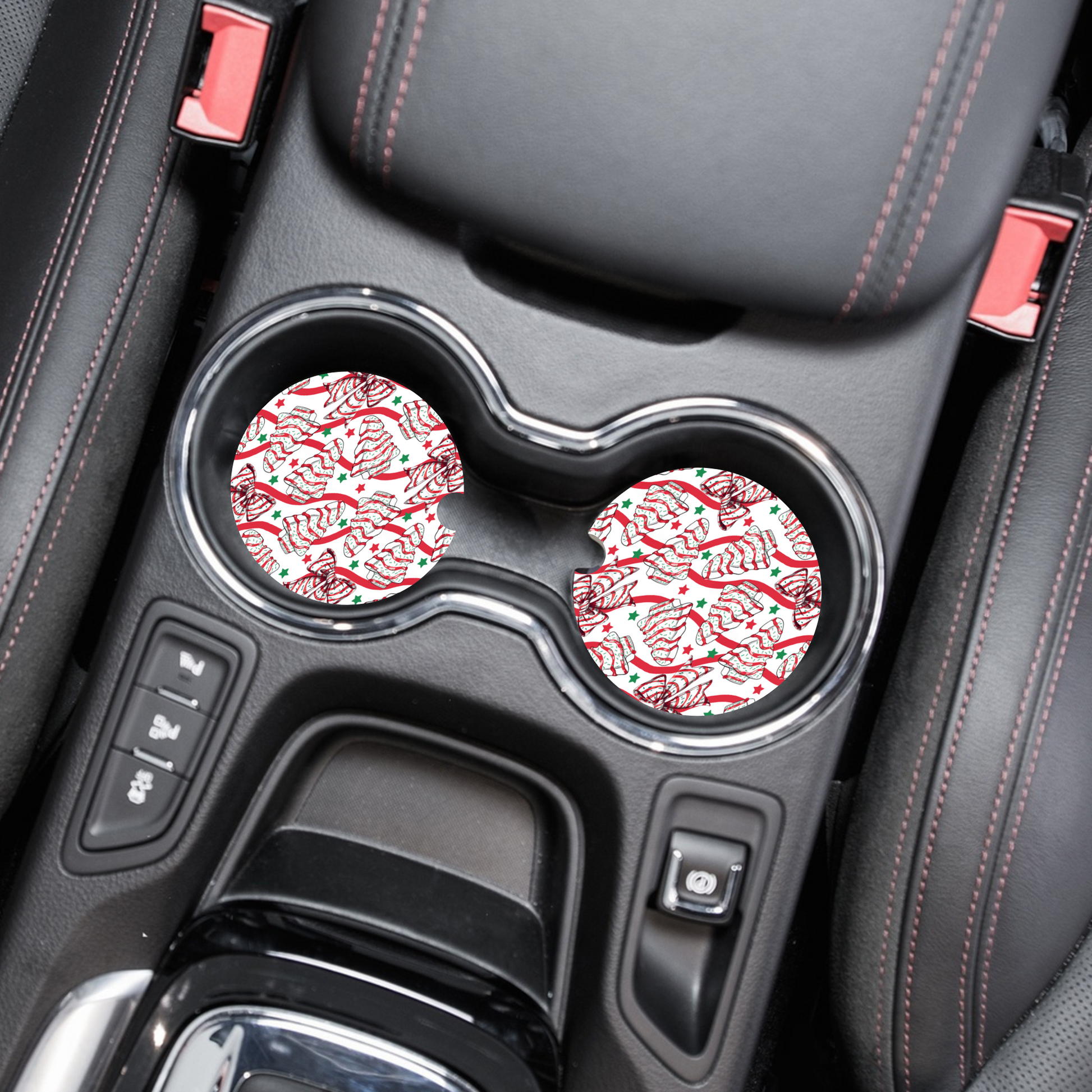 Add a sweet, cheerful touch to your holiday drives with the Sweet Tree Delight Car Coaster. Featuring candy cane stripes and festive bows, it brings joyful holiday spirit while protecting your cup holder from spills. Perfect for spreading festive cheer wherever you go.