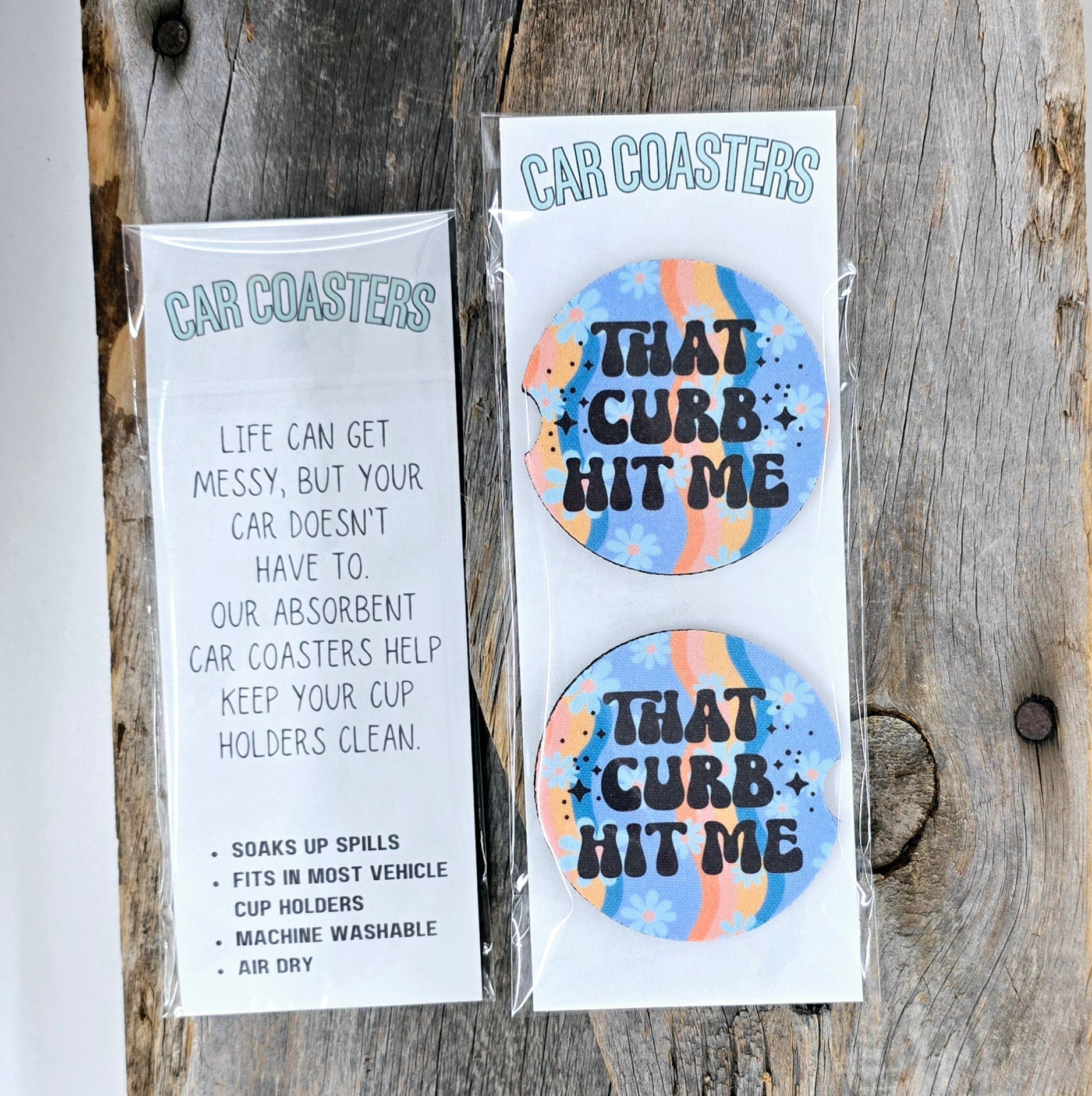 For the expert navigators who occasionally get sneak-attacked by those pesky, invisible curbs, our 'That Curb Hit Me Car Coasters' are here to ease the blow – to your ego and your cup holders! Adorably designed with a splash of bright colors and whimsical flowers, they'll cheerfully catch any spills that happen when you're too busy arguing with your GPS. These coasters are a quirky reminder that no one's perfect, especially when random curbs jump out of nowhere. So go ahead, give a knowing smile when you park a little too enthusiastically, & let these coasters handle the aftermath. They're the perfect sidekick for those "oops" moments on the road – because sometimes, the curb just gets in the way!