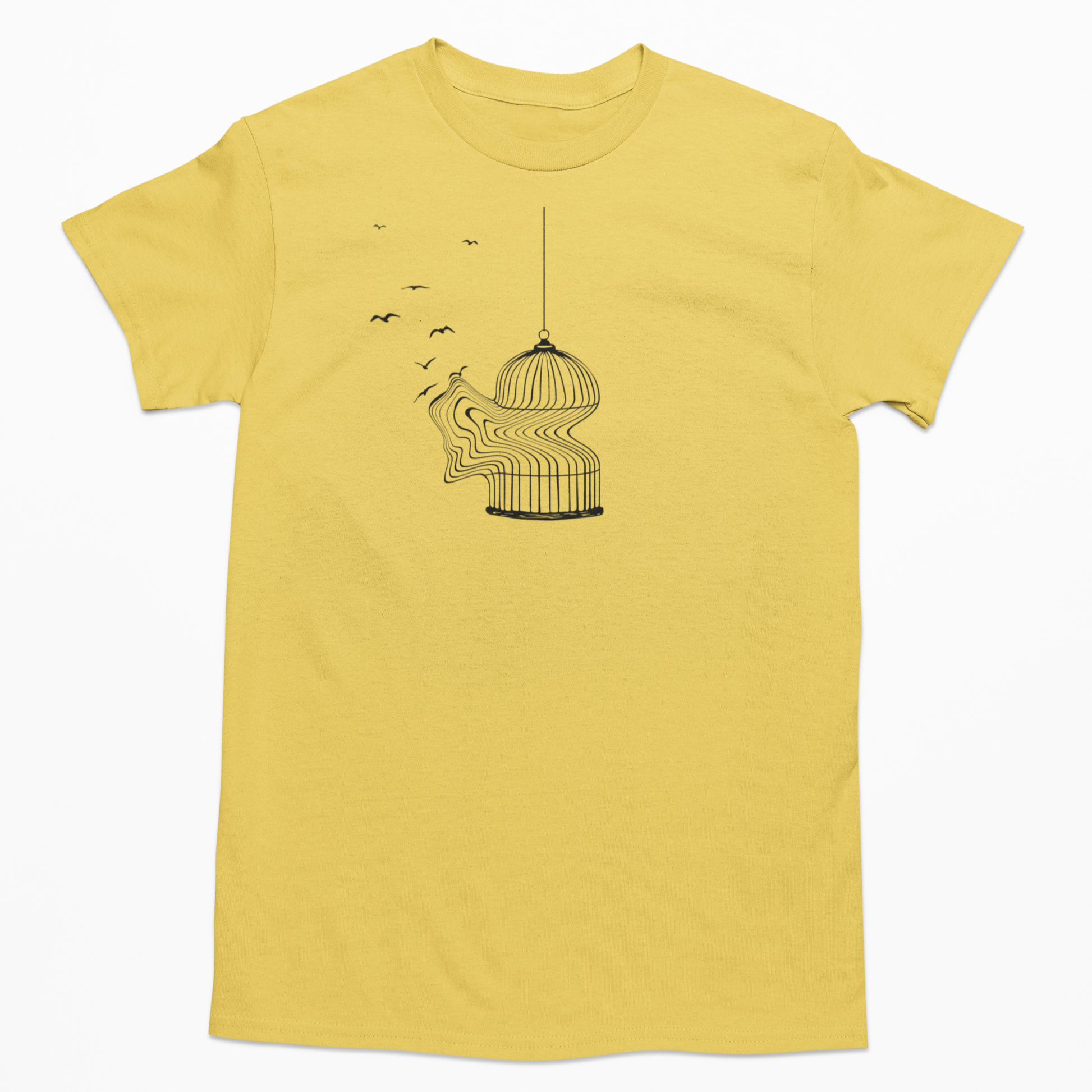 The Transformation Graphic Tee captures the powerful moment of freedom with a warped birdcage swinging open as birds take flight. This design symbolizes breaking barriers and embracing your true self, inspiring confidence and personal growth. Perfect for those ready to soar beyond limits and express their authentic journey.