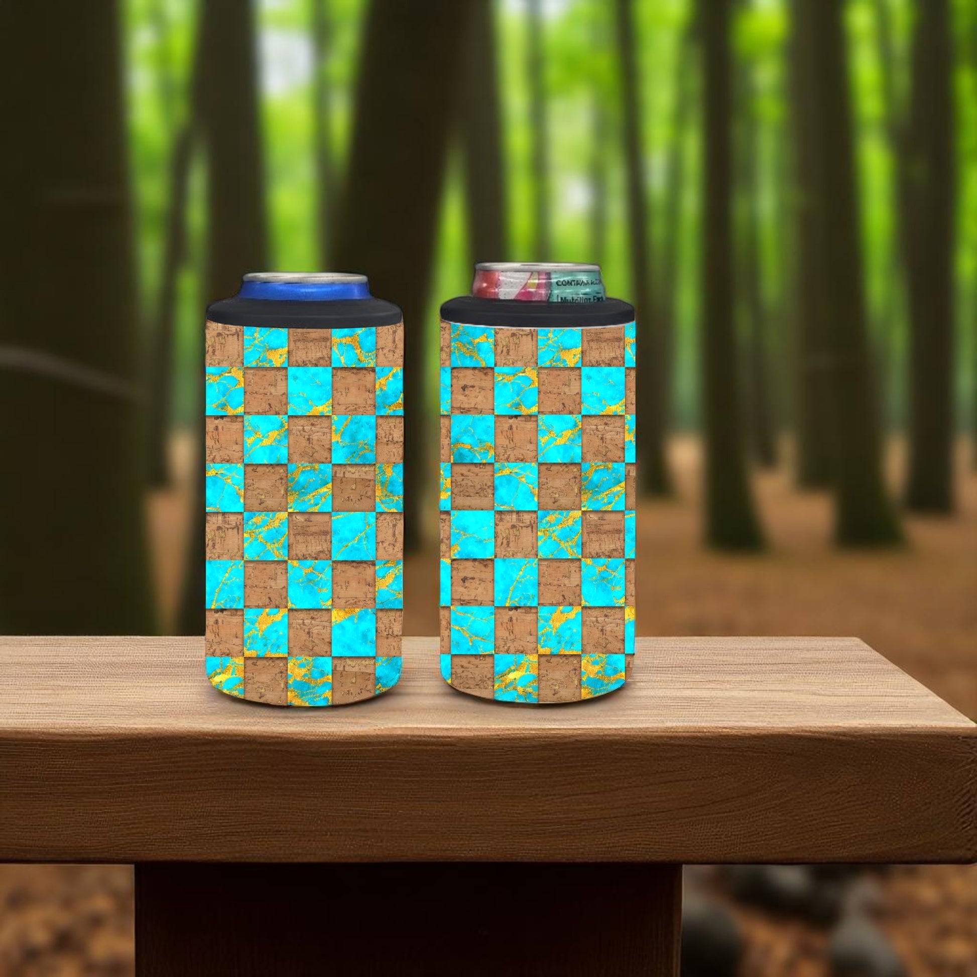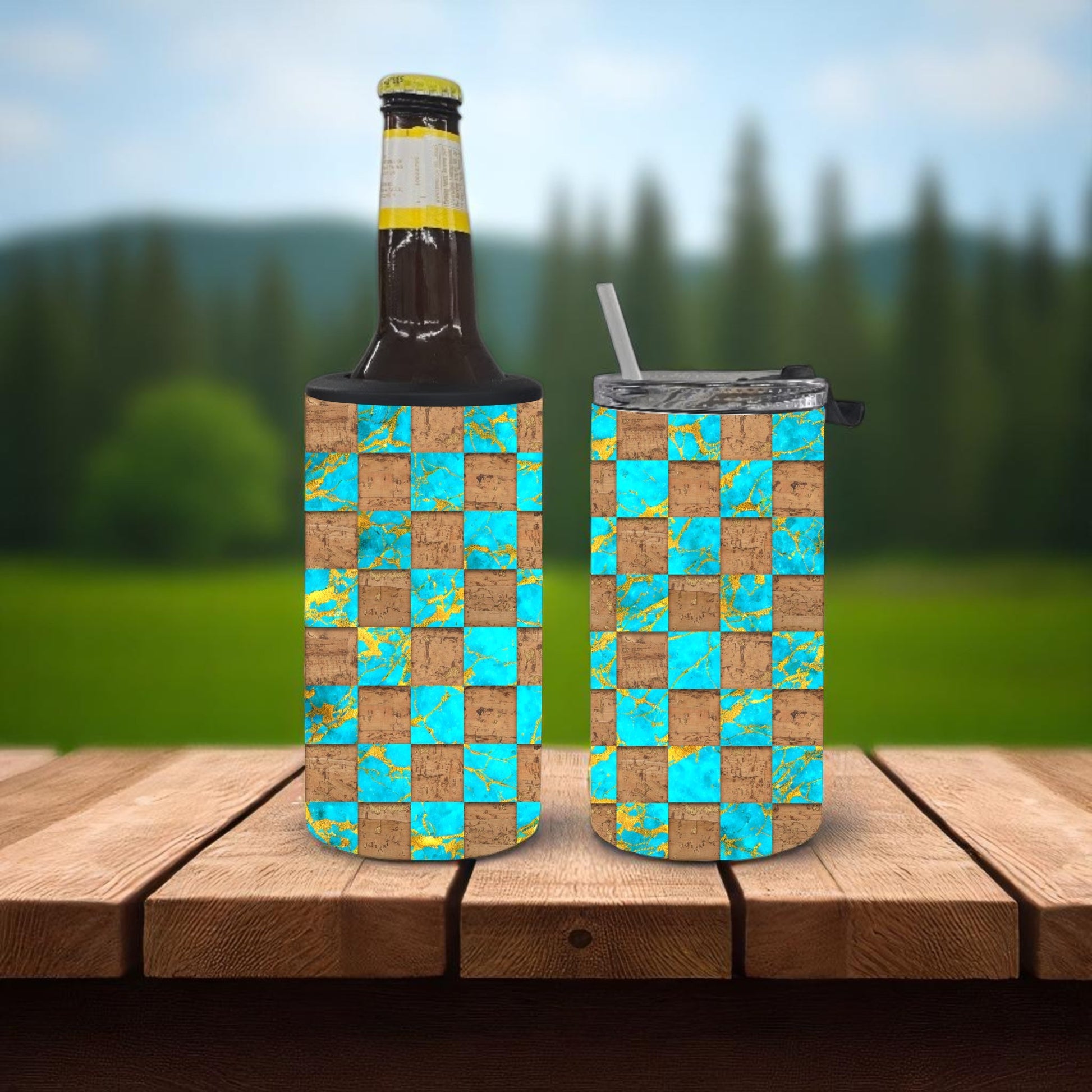 Experience luxury with the Turquoise Marble 4-in-1 Can Cooler Cup, featuring faux turquoise accented by shimmering gold veining for an elegant touch.