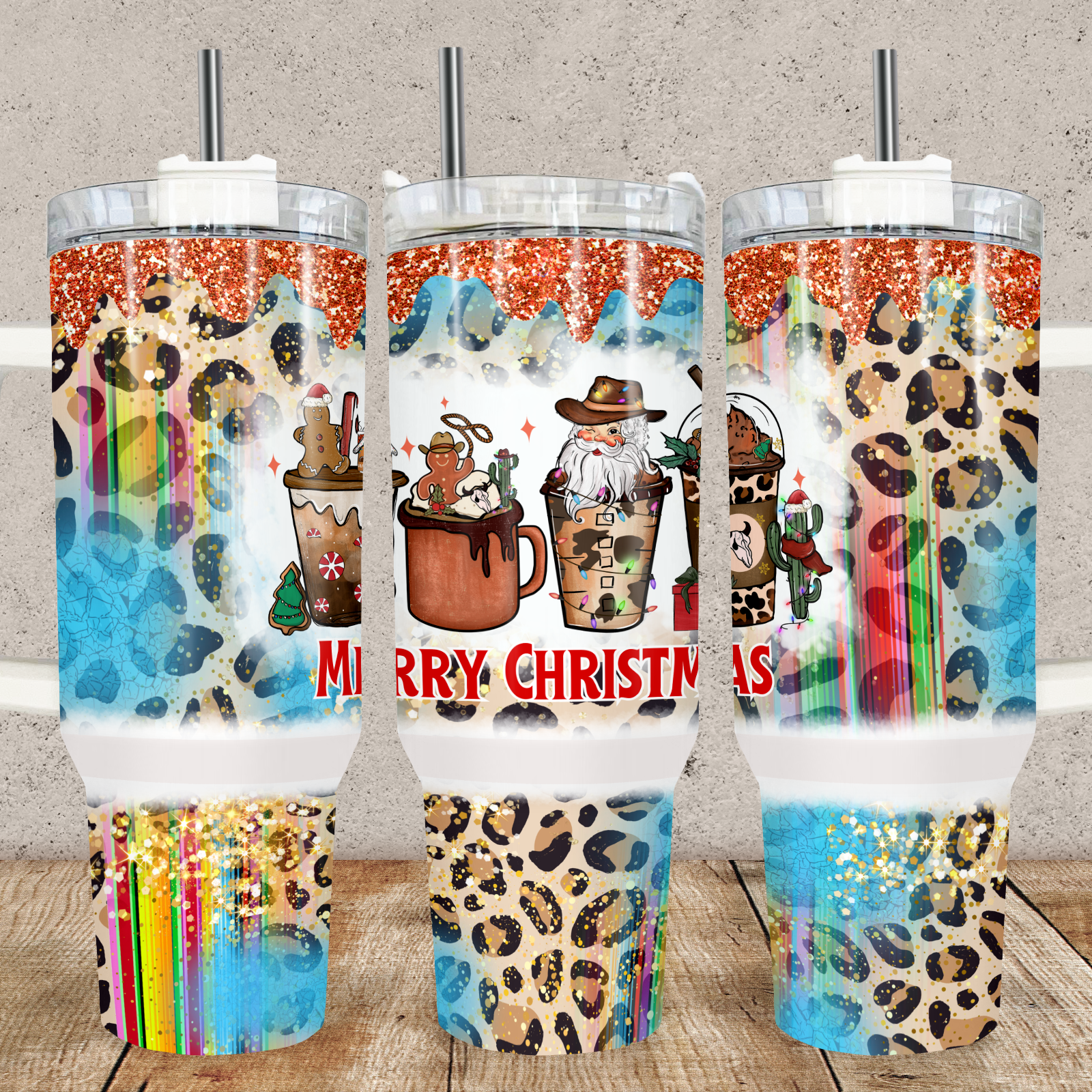 Celebrate Christmas with a wild twist using our Leopard Serape “Merry Christmas” tumbler! This unique design features a fun mix of leopard print, serape patterns, and holiday cheer, topped off with a glittering red drip for extra sparkle. Adorned with festive mugs and a cowboy-style Santa, this tumbler is perfect for those who love a touch of country flair and bold style. Made from high-quality stainless steel, it keeps drinks hot or cold, making it ideal for holiday sipping. Add a splash of personality to your Christmas with this one-of-a-kind tumbler, or gift it to someone who loves to stand out! 🎅🌵✨
