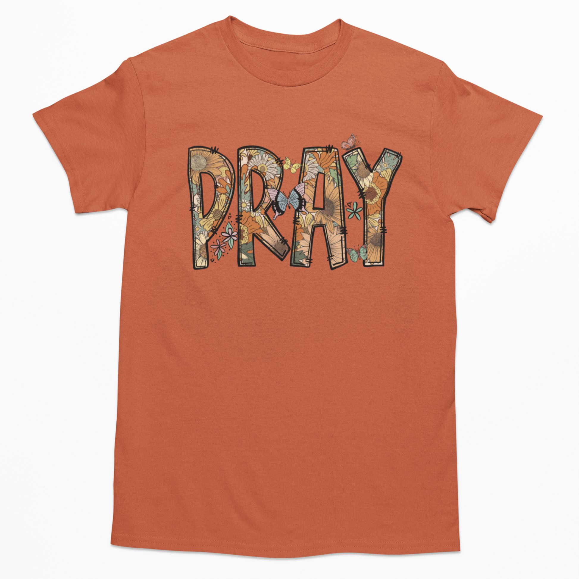The Whispered Petals Graphic Tee features the word “PRAY” blooming in vintage florals and delicate butterfly wings, embodying hope, growth, and peace. This subtle yet powerful design invites quiet reflection and encourages positive transformation. Wear it to express your faith with grace and serenity.