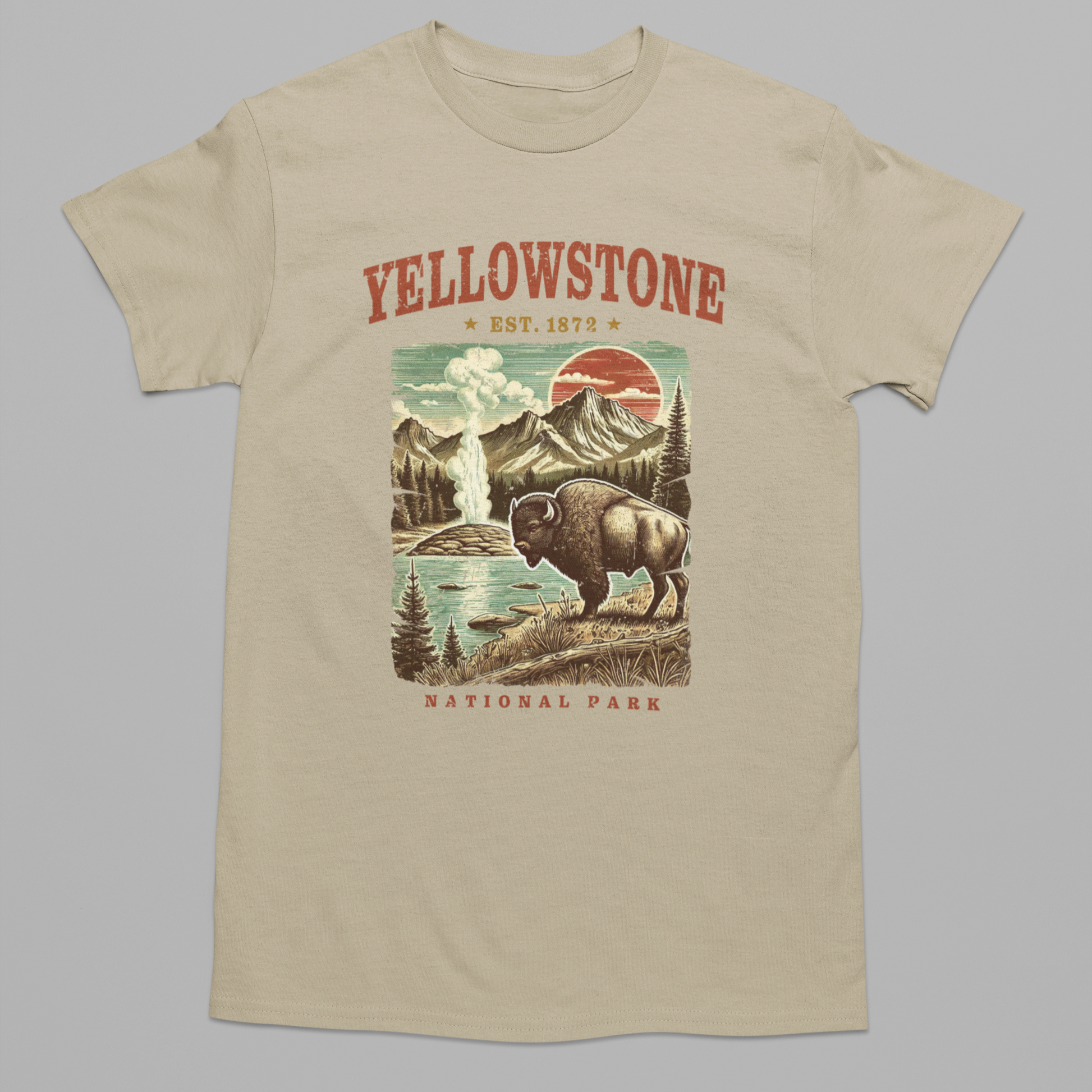 Experience the wild beauty of Yellowstone with the Yellowstone Bison Graphic Tee. Showcasing majestic bison, steaming geysers, and breathtaking mountain views, this shirt embodies the spirit of America’s iconic national park. Ideal for nature enthusiasts who want to carry a piece of Yellowstone’s unforgettable landscape wherever they roam.
